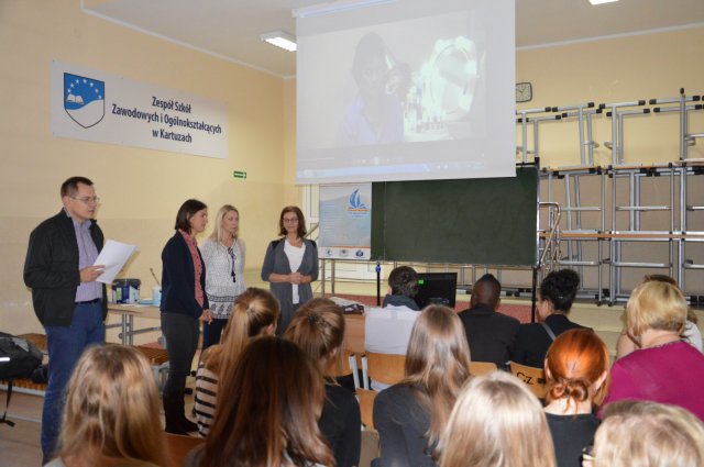 W sobotę , 19 grudnia dobiegły końca praktyki zawodowe , które w kartuskich sklepach odbywali uczniowie z Francji wraz z polskimi kolegami. Przez ten czas pracowali w sklepie obuwniczym „I love shoes” pani Żołnowskiej,” Odzież Damska-Męska” pana Wydrowskiego oraz w sklepie sportowym „Aba Sport” pani Bladowskiej. Osiem osób z klas II TE a oraz III TOH tj. Marta Okroj, Izabela Węsiora , Maria Formela , Dorota Kwidzińska, Julita Merchel , Jakub Arndt, Daria Ptach i Magdalena Tess przez miesiąc uczyło się zawodu wraz z uczniami z Lycee Professionnel Jean Capelle z Bergerac. Uczniowie nie tylko zgłębiali tajniki zawodu ale również rozwijali swoje umiejętności językowe, ponieważ porozumiewali się między sobą w języku angielskim. Młodzież z Francji Yassin, Daisy, Zahra i Jean – Frederic w każdy weekend wolny od pracy zwiedzała okolice. Wraz z opiekunami , uczniami i nauczycielami