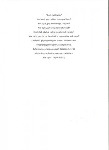 I miejsce – zajął utwór „Martwe kordony” autorstwa Macieja z kl. I TI; II miejsce „W miłości i na wojnie” Weroniki z kl. I TOR; III miejsce „Polsko…” Mileny z kl. II TOR oraz wyróżnienie utwór Karoliny z kl. III TOR „Kim byłaś Matko”.