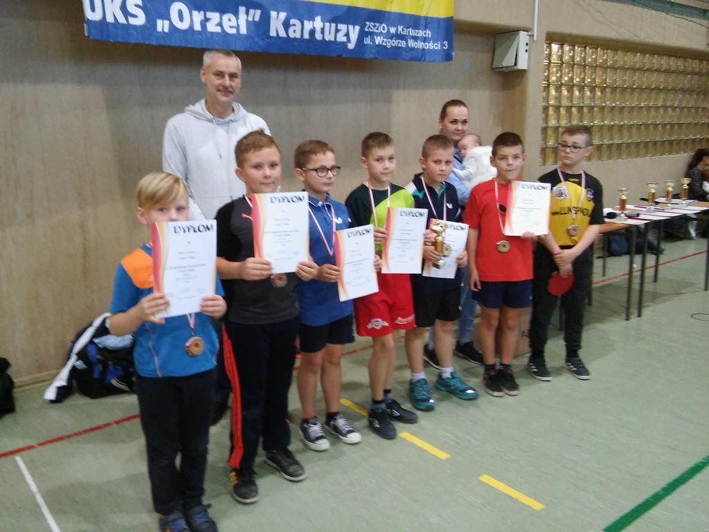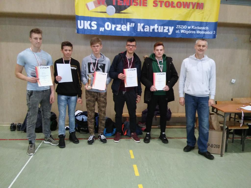 Organizujemy w naszej szkole zajęcia tenisa stołowego dla dzieci i młodzieży oraz dorosłych, w szczególności dla uczniów ZSZ i O w Kartuzach. 24 i 25 listopada 2018 roku odbyły się po raz 17 Indywidualne Mistrzostwa Kartuz w Tenisie Stołowym. Gmina Sierakowice z okazji 100 – lecia Odzyskania Niepodległości Polski ufundowała dodatkowe nagrody – 100 medali, które zostały wręczone uczestnikom projektu. Zawody zostały zorganizowane w uroczysty sposób. Otwarcia zawodów dokonał przedstawiciel Powiatu Kartuskiego p. Mirosław Szutenberg, a uroczystego podsumowania turnieju w imieniu dyrekcji szkoły dokonała p. Teresa Riegiel wręczając medale, dyplomy i nagrody dla uczestników. Rozgrywki cieszyły się dużym zainteresowaniem dzieci i młodzieży oraz dorosłych. Organizator zawodów p. Roman Pytka z dużym zadowoleniem przyjął sukcesy naszych uczniów. Mistrzem Kartuz w kategorii szkoły ponadgimnazjalne została Patrycja Arent, drugie miejsce zajęła Ewelina Sikora, trzecie miejsce zajęła Agnieszka Hirsz. Wśródchłopców Szymon Musiołowski wywalczył mistrzostwo Kartuz, drugi był Łukasz Gosz, dalej Paweł Drywa, Dawid Belgru, Damian Pestka, Piotr Kreft. W drugim dniu zawodów w kategorii seniorki młodsze PartrycjaArent wywalczyła drugie miejsce, Ewelina Sikora była trzecia, dalsze miejsce zajęła Krystyna Bielicka, oraz seniorzy młodsi: drugie miejsce wywalczył Paweł Drywa, trzeci był Łukasz Gosz, czwarty Damian Pestka. Sędziował p. Mirosław Płotka.