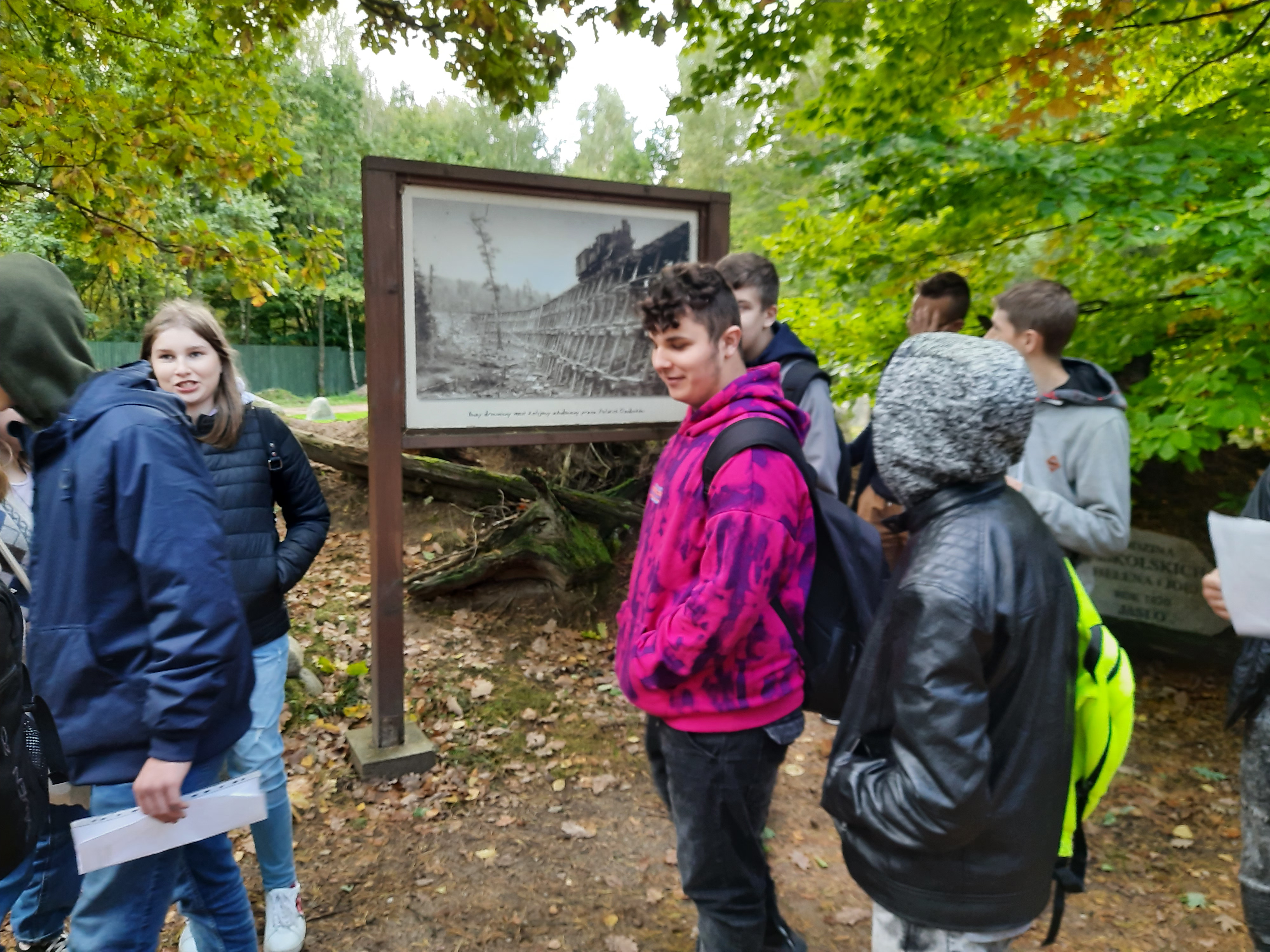 Dnia 24.09.2021 r klasa 1 wielozawodowa wraz z wychowawcą p. M. Stefanowskim i opiekunem p. U. Nastały wybrali się na jednodniową wycieczkę do Szymbarku. Klasa została podzielona na grupy, gdzie każdy dostał przydział zadań do wykonania. W Szymbarku czekał na nas przewodnik. Zaczęliśmy od zwiedzania najdłuższej deski, domu sybiraka, pociągu, w którym wywieziono Polaków na Syberię. Po drodze zeszliśmy do bunkru i przez ponad 2 minuty słuchaliśmy odgłosów wojny. Ogromne wrażenie zrobił na nas dom do góry nogami, gdzie z trudem przeszliśmy przez niego. Zmęczeni poszliśmy na kiełbaski, które sami piekliśmy na ognisku.