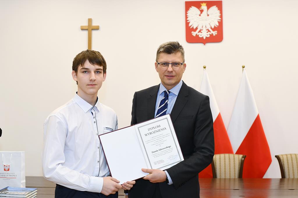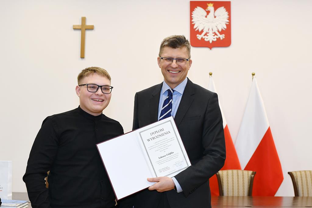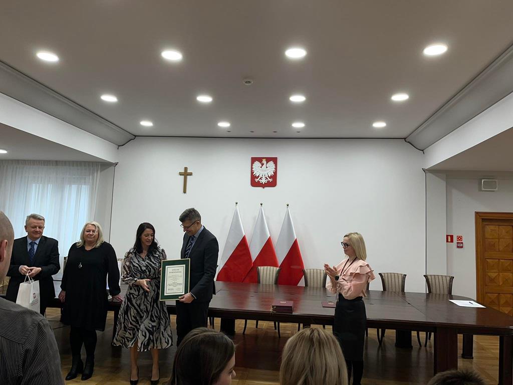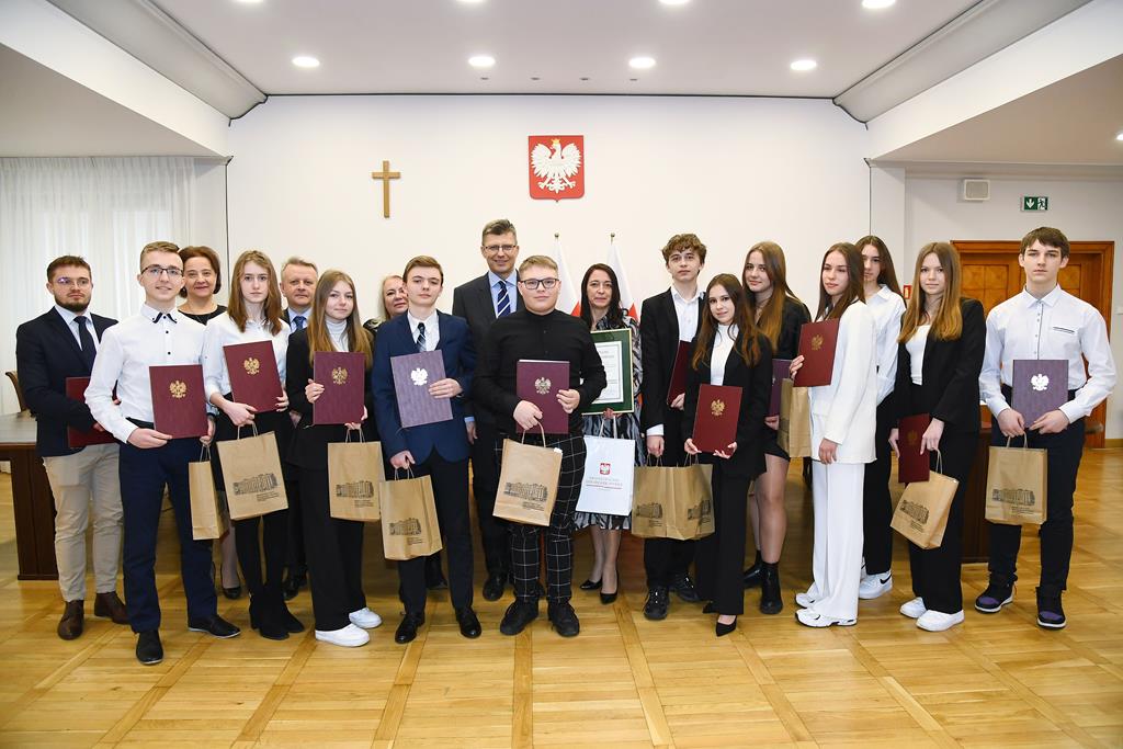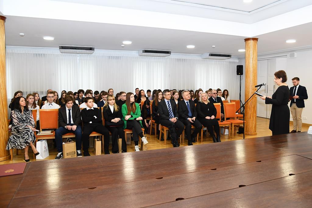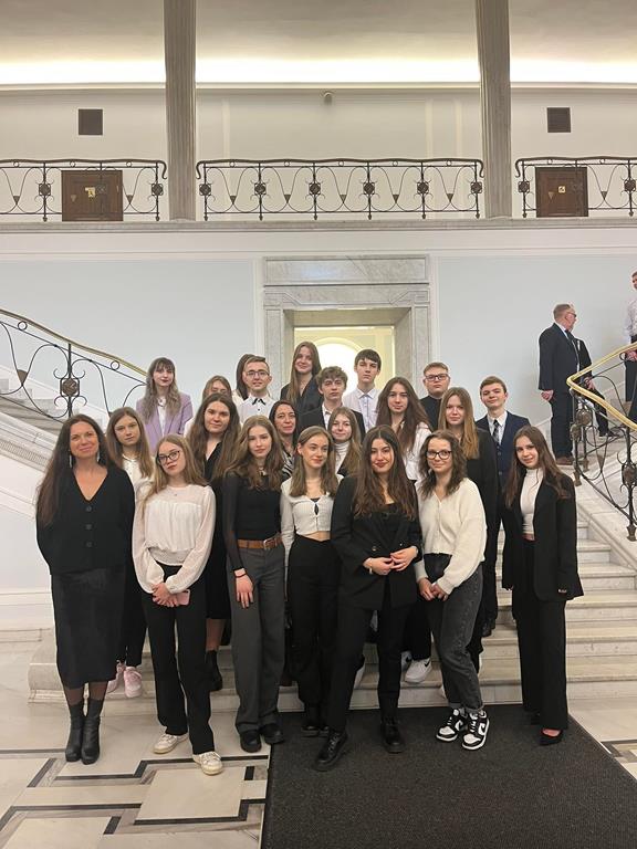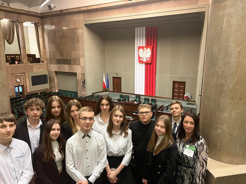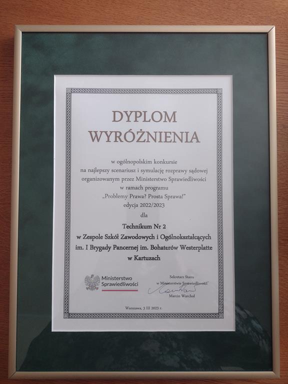 3 marca 2023 roku grupa 12 uczniów z klasy II TE i I TE w osobach: Katarzyna Bladowska, Julia Eron, Wiktoria Goitowska, Kaja Joskowska, Julia Reiter, Natalia Richert, Wiktoria Żołądz, Dominik Wałaszkowski, Łukasz Gołąbek, Piotr Turzyński, Daniel Zaborowski i Olivier Jasek otrzymała wyróżnienie w Ogólnopolskim konkursie „Problemy prawa? Prosta sprawa!”. Naszym opiekunem merytorycznym była pani Joanna Stencel. Konkurs polegał na samodzielnym opracowaniu scenariusza, zainscenizowanie i nagranie rozprawy sądowej na podstawie wylosowanego stanu faktycznego. Nagrody wręczył wiceminister sprawiedliwości Marcin Warchoł.