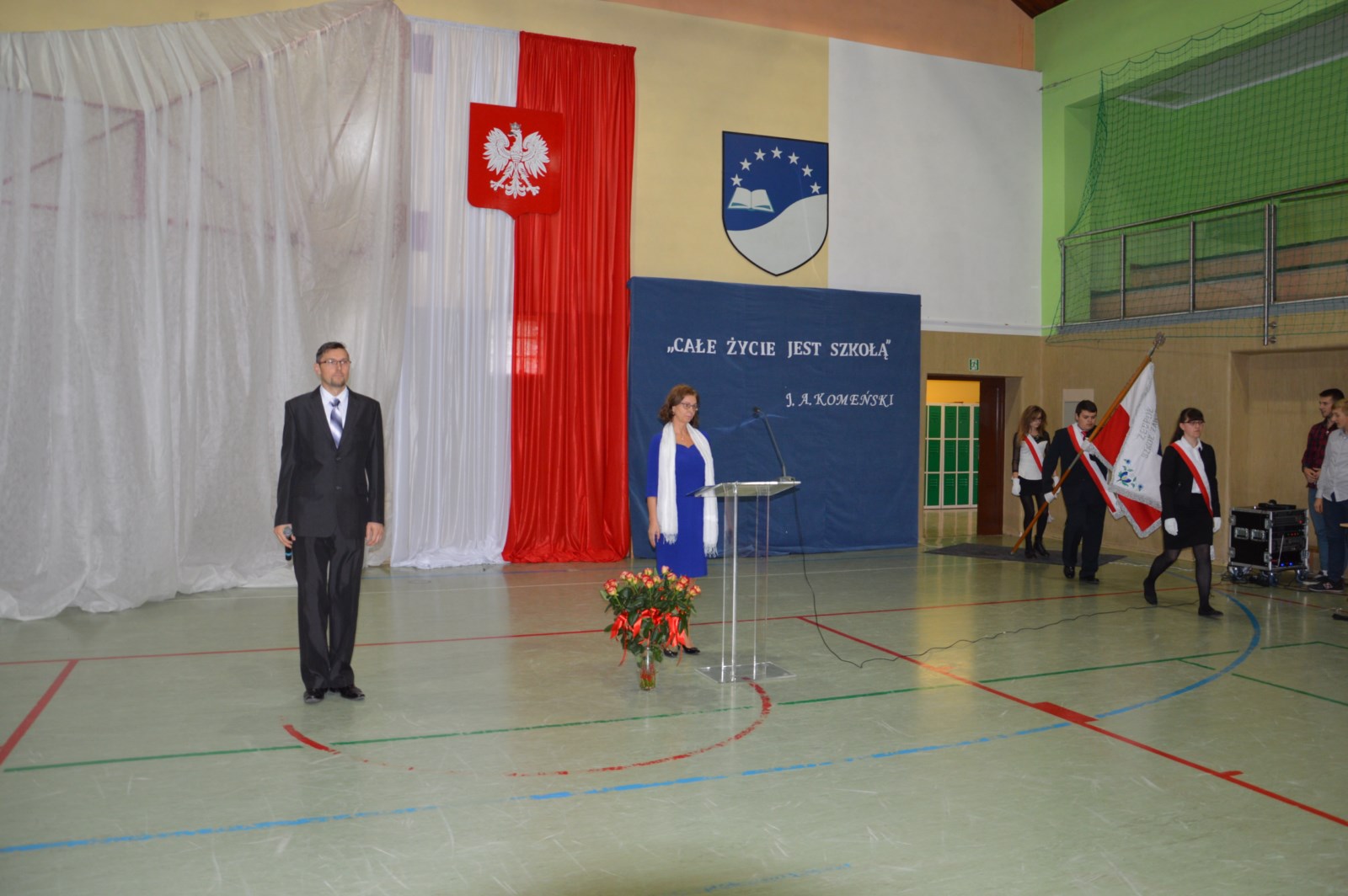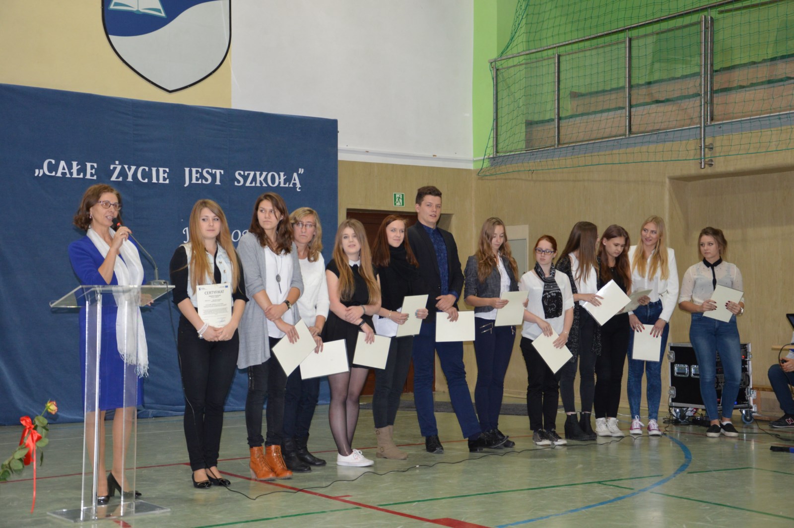 „Całe życie jest szkołą” to motto uroczystego apelu przygotowanego przez uczniów klasy IV TE a, I TE a pod kierunkiem nauczyciela Renaty Kobiela z okazji Święta Edukacji Narodowej. Wraz z życzeniami dla dyrekcji, nauczycieli i pracowników administracji, uczniowie zaprezentowali kabaret i piosenki związane z życiem szkoły. Podczas uroczystości obecny był pan wicestarosta Bogdan Łapa i pan Wiceprzewodniczący Mirosław Szutenberg.