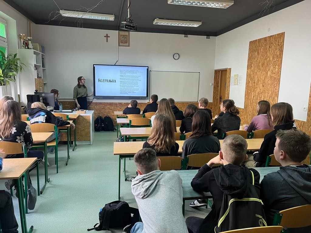 W ramach projektu, 9 marca w ZSZiO na Wzgórzu przeprowadziłyśmy warsztaty dla uczniów z klas siódmych ze Szkoły Podstawowej im. Majora Henryka Sucharskiego w Chmielnie. W trakcie zajęć nasi młodsi koledzy mogli się dowiedzieć w jaki sposób poprawnie napisać list, ogłoszenie, zaproszenie, rozprawkę i opowiadanie, a także jakie są sposoby skutecznej nauki. Poleciliśmy również kilka wartych sprawdzenia źródeł wiedzy, które pomagają utrwalić i przypomnieć sobie materiał do egzaminu. Postarałyśmy się także odświeżyć wiedzę uczniów w zakresie ortografii i interpunkcji. Zajęcia składały się z dwóch części: teoretycznej, a następnie praktycznej.