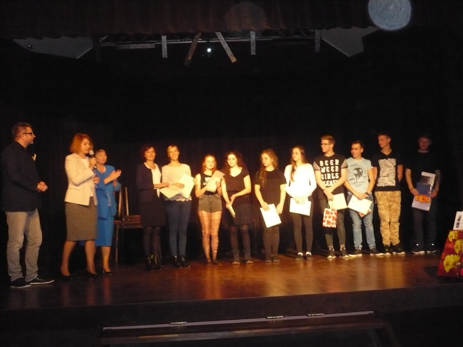 Grupa przygotowywana przez Panią Martę Furman 10 grudnia wzięła udział w Wojewódzkim Przeglądzie Małych Form Teatralnych pod tegorocznym hasłem „Pomyślmy o HIV”. Nad organizacyjnym przygotowaniem uczniów ze Szkolnego Koła Teatralnego czuwała Pani Justyna Kluge. Scenariusz oraz układ choreograficzny przygotowała uczennica klasy II LOc – Kaja Zalewska.