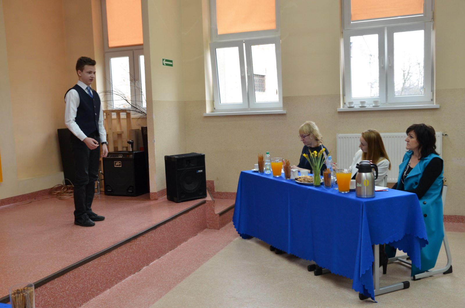 Konkurs rozpoczął się występem szkolnego zespołu muzycznego. Następnie pani dyrektor Grażyna Maczulis oraz organizatorzy Sylwia Klaman i Arkadiusz Ulenberg przywitali przybyłych uczestników oraz ich opiekunów.