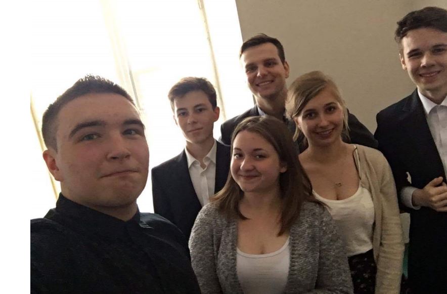 Na zdjęciu Marta Okroj z finalistami oraz Posłem na Sejm RP Jakubem Kuleszą.