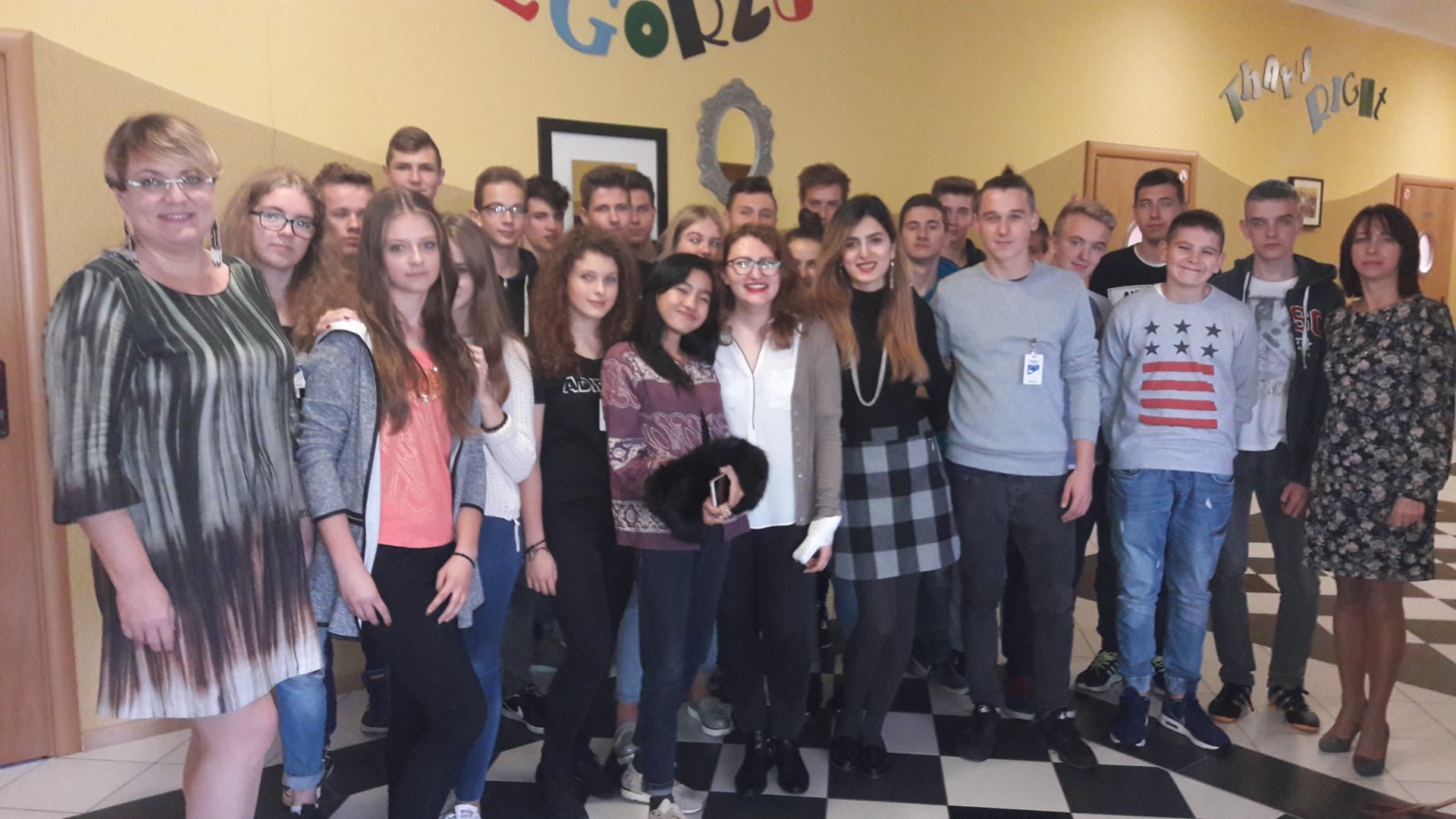 Z Iranu, Indonezji i Rumunii przyjechały na „Wzgórze” studentki anglistyki, które w ramach praktyk programu AIESEC prowadzą zajęcia w naszej szkole. Prezentują kulturę i obyczaje swoich krajów, wymieniają doświadczenia oraz nawiązują przyjaźnie. Pozostaną tu przez cały tydzień. W swoich domach goszczą je wybrani nauczyciele naszej szkoły, którzy popołudniami pokazują dziewczynom nasz region. Ostatni dzień zajęć i uroczyste pożegnanie Pardis, Duity i Aleksandry - studentek, które w ramach programu AIESEC gościły w szkole na "Wzgórzu". Pani dyrektor Grażyna Maczulis, Pani wicedyrektor Joanna Stencel oraz angliści Sylwia Klaman i Arkadiusz Ulenberg dziękują młodzieży ZSZiO w Kartuzach za wspaniałą atmosferę podczas zajęć oraz przygotowanie licznych atrakcji dla naszych gości.