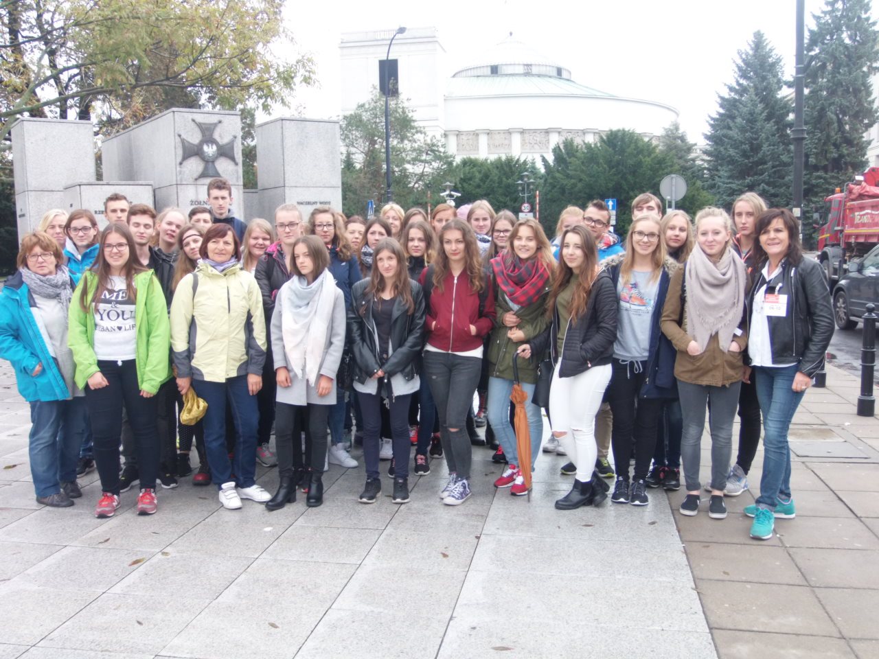 Realizując projekt Stowarzyszenia dla Rozwoju Edukacji przy ZSZiO, młodzież miała możliwość wyjazdu do Warszawy. Uczniowie brali udział w zajęciach warsztatowych w parlamencie RP, przysłuchiwali się debacie posłów oraz oglądali proces głosowania. Ciekawym przeżyciem dla młodych ludzi była wizyta w Trybunale Konstytucyjnym. Na trasie „podboju” stolicy znalazło się także Muzeum Polin – gdzie dzięki interaktywnym zajęciom mogli poznać historię Żydów w Polsce. Olbrzymie przeżycie to zwiedzanie Muzeum Powstania Warszawskiego. Oczywiście był także spacer po Łazienkach, Krakowskim Przedmieściu, Nowym Świecie, Placu Zamkowym… Ukoronowaniem naszej wizyty w stolicy było zwiedzanie Pałacu Prezydenckiego. W pamięci na długo pozostaną wrażenia, emocje i obrazy…