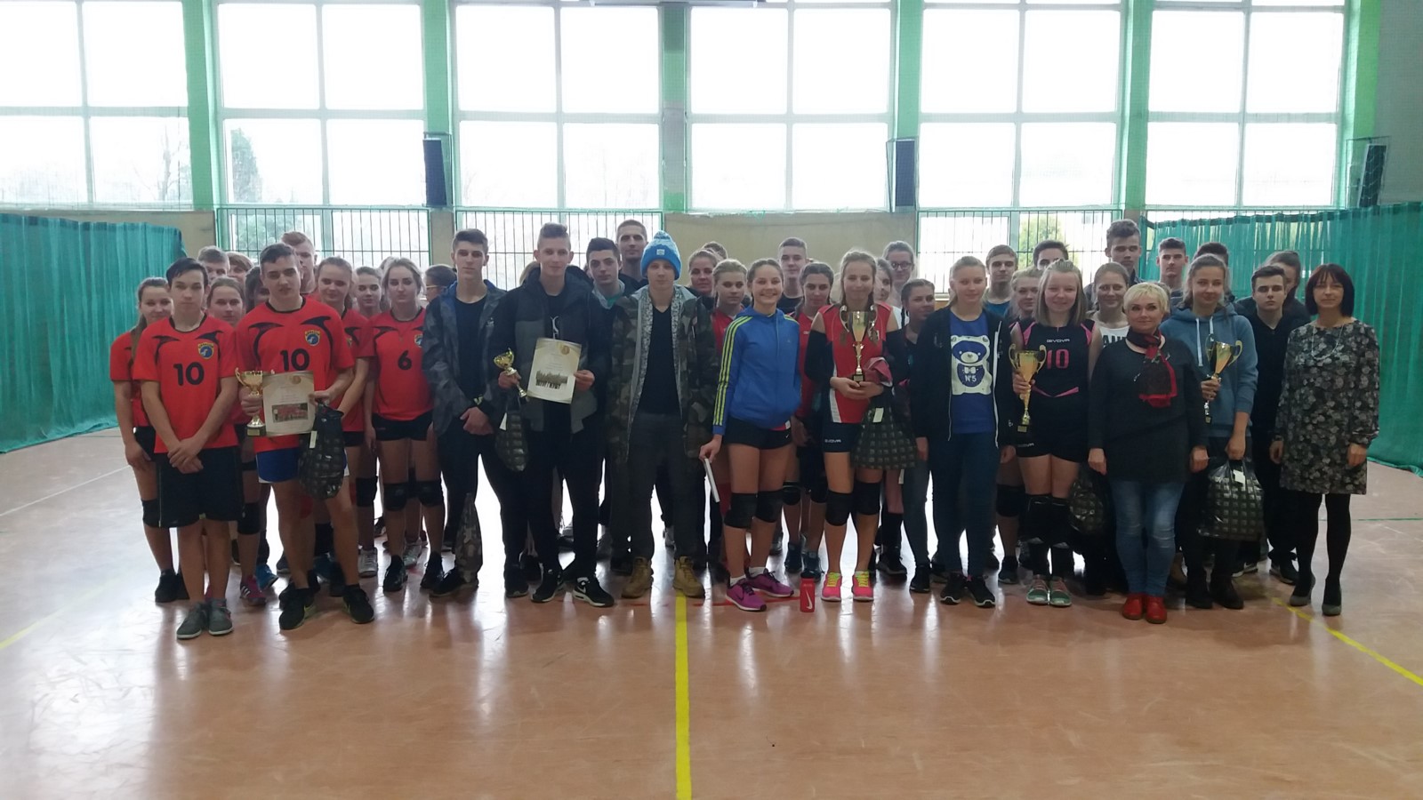 W dniu 15 listopada 2016 roku w ZSZ i O w Kartuzach gościliśmy uczniów szkół gimnazjalnych z powiatu kartuskiego, którzy brali udział w XIV Powiatowym Turnieju Gimnazjalistów w Piłce Siatkowej Drużyn Mieszanych. Jest to jedyny taki turniej rozgrywany w naszym powiecie i cieszy się bardzo dużą popularnością wśród młodzieży. W rozgrywkach, w których zespoły składały się z 3 dziewcząt i 3 chłopców, uczestniczyło pięć szkół gimnazjalnych. Zespoły grały systemem „każdy z każdym”. Łącznie rozegrano 10 spotkań, w których I miejsce zajęło Gimnazjum Publiczne Nr 2 w Żukowie. O kolejności końcowej decydowały punkty, różnica w setach, różnica małych punktów, mecz bezpośredni. Drużyna zwycięska zdominowała cały turniej wygrywając wszystkie mecze po 2:0 nie tracąc nawet seta. Na drugim miejscu uplasowało się Gimnazjum Nr 1 w Kartuzach, które punktowały w swoich trzech meczach. O trzecim miejscu zdecydowały tzw. „małe punkty” , w którym Gimnazjum z Przodkowa o 2 punkty pokonało Gimnazjum Sierakowice. Ostatnie, piąte miejsce, zajęło Gimnazjum Publiczne w Somoninie, które rozegrało dobry turniej, lecz w samych końcówkach wszystkich meczy musiało uznać przewagę i doświadczenie przeciwników przegrywając wszystkie mecze.