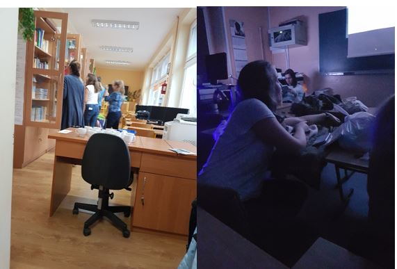 Dnia 26.10.2017 w bibliotece szkolnej odbył się Wieczór z biblioteką i filmem. Na spotkanie przybyli uczniowie z koła Przyjaciół Biblioteki (Ewelina Domaszk III TE, Marta Kitowska, Izabela Lypiak, Iwona Barzowska, Andrzej Pipka, Wojciech Dawidowski II TE, Marta Toporek I TH, Oliwia Młyńska I LOc oraz absolwentki Oliwia Armatowska i Agnieszka Kobiela), którzy uczestniczyli w grze bibliotecznej Escape the Room. Kilkuosobowa grupa zamknięta została w czytelni i rozwiązywała szereg zagadek, aby odnaleźć klucz umożliwiający wydostanie się na zewnątrz. Liczyło się wykonanie zadania oraz czas (45 min).