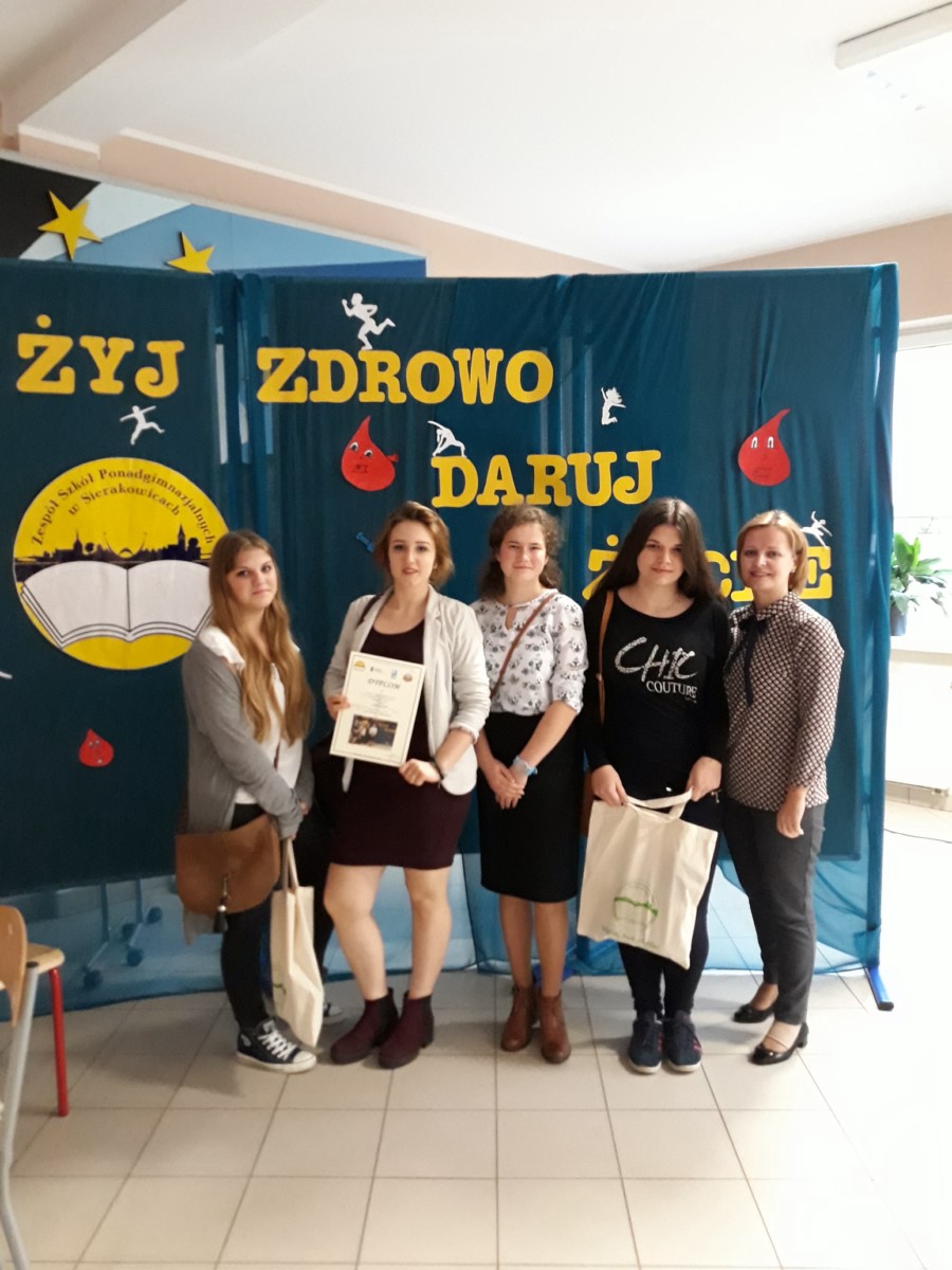 Dnia 24.10.2017 w ZSP w Sierakowicach odbył się powiatowy konkurs „ Żyj zdrowo - daruj życie”. Zadaniem uczestników było poszerzenie wiedzy i umiejętności na temat ochrony zdrowia i zasad zdrowego żywienia, rozbudzenie zainteresowania zdrowym odżywianiem oraz kształtowanie kreatywności estetycznego przygotowania posiłku. Konkurs składał się z części językowej ( język niemiecki i angielski), żywieniowej oraz rolniczej. Drużyna z kl. I LO d w składzie: A. Pipka, K. Pela, Z. Syldatk, K. Jeszka zajęły I miejsce.