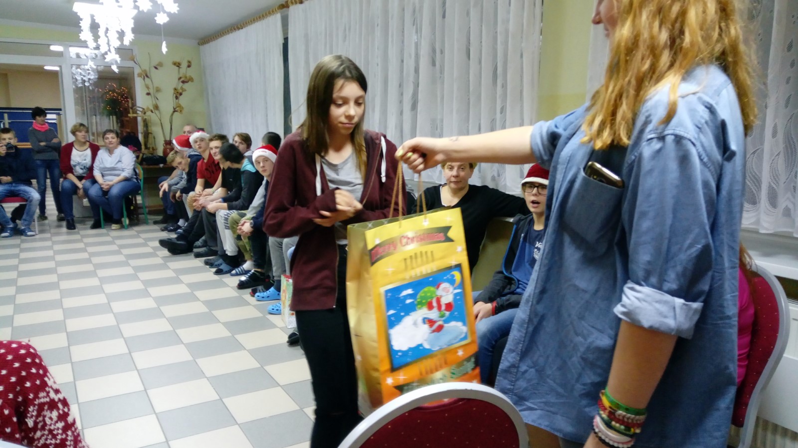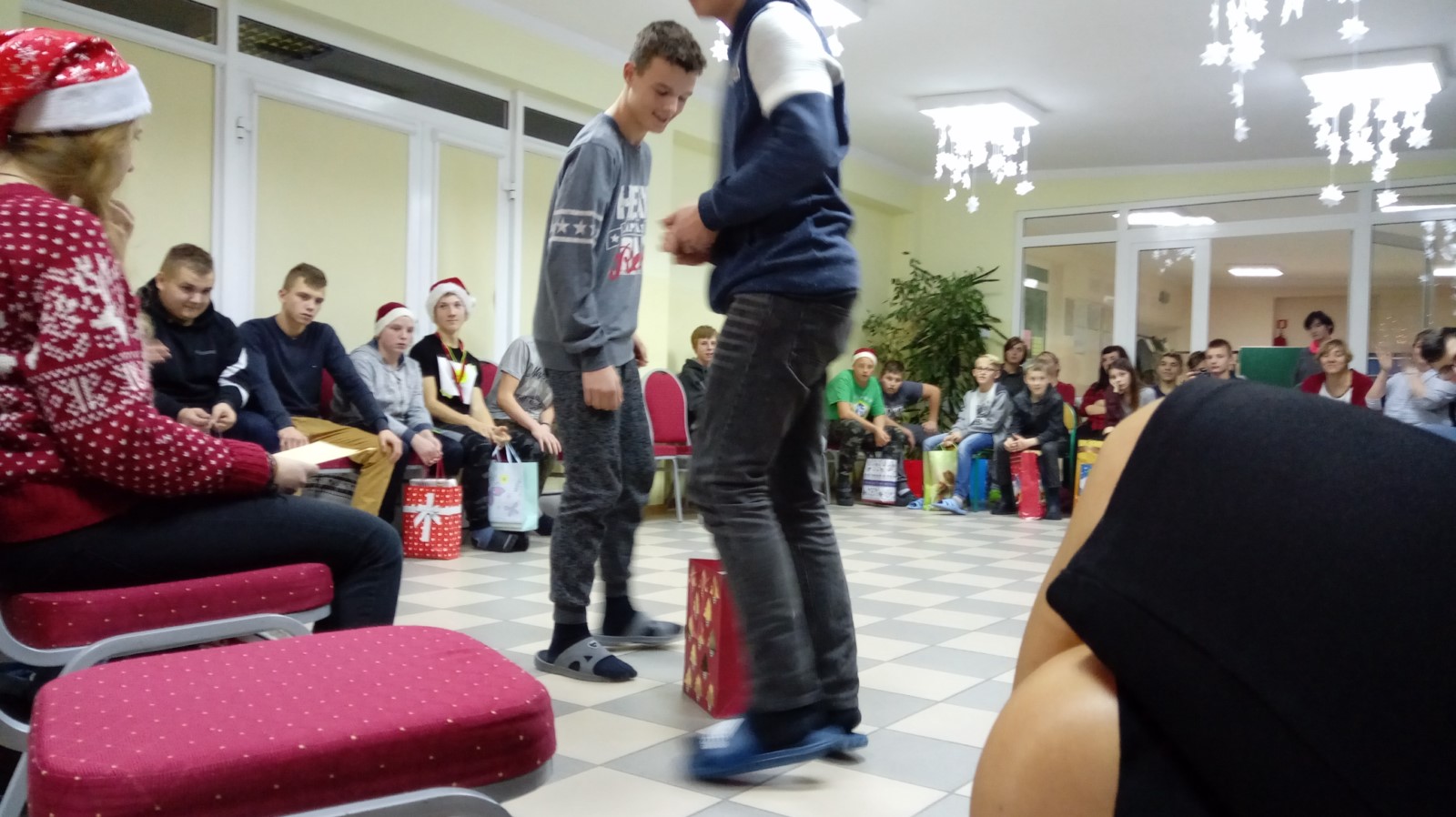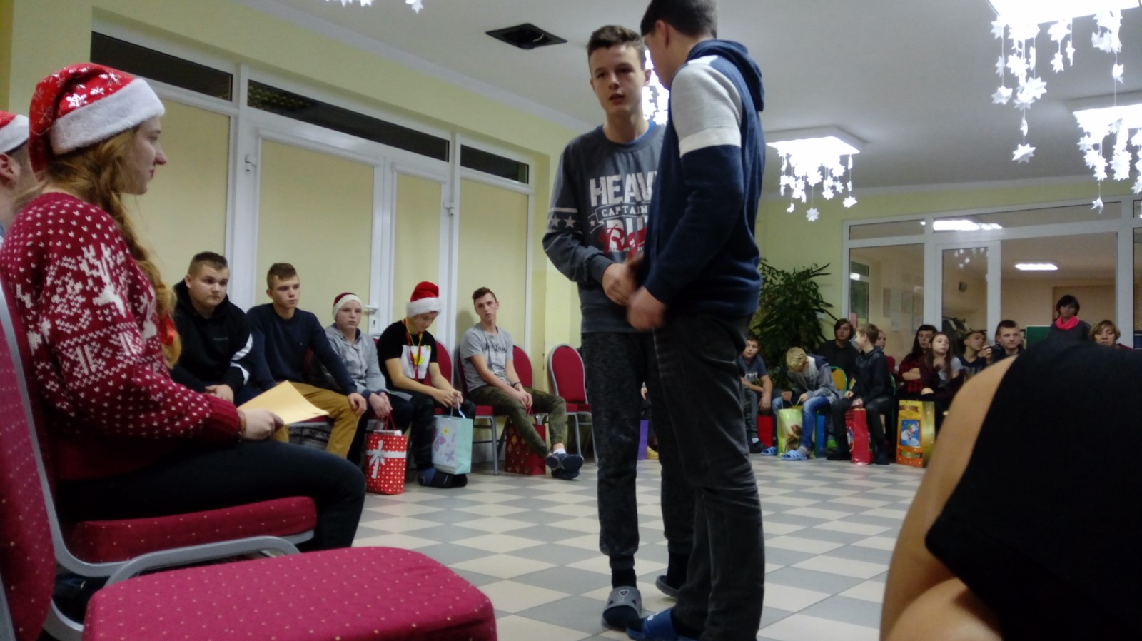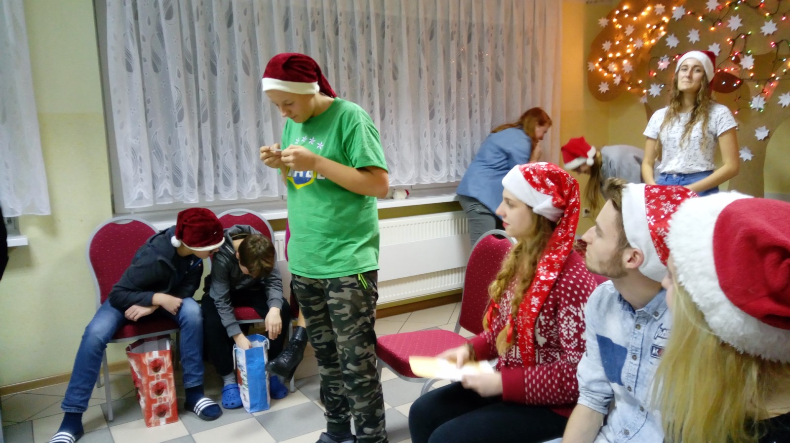 W dniu 6 grudnia wolontariusze z naszego koła: Angelika Leyk, Martyna Fiołek, Natalia Damaszk, Weronika Kosater, Marta Dawidowska, Adam Szymichowski, Joanna Okroj i Weronika Kwidzińska pod opieką pani Beaty Gruby udali się do Internatu Ośrodka Szkolno - Wychowawczego w Kartuzach, by uczcić tradycyjne Mikołajki. Dzięki zorganizowanej wcześniej w szkole i CH Kaszebe akcji charytatywnej udało się zebrać słodycze i zabawki, z których wolontariusze przygotowali paczki dla podopiecznych ośrodka. Zabawa mikołajkowa przebiegała w niezwykle miłej i radosnej atmosferze.