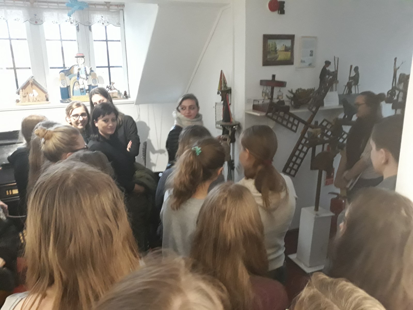 W ubiegłym roku szkolnym, z inicjatywy pani J. Kluge i M. Meisner – Kwiatkowskiej rozpoczęliśmy współpracę z Muzeum Kaszubskim w Kartuzach. Dzięki uprzejmości pani dyrektor Muzeum, grupa naszej młodzieży, została przeszkolona na przewodników, a dziś sami szkolą młodszych kolegów.