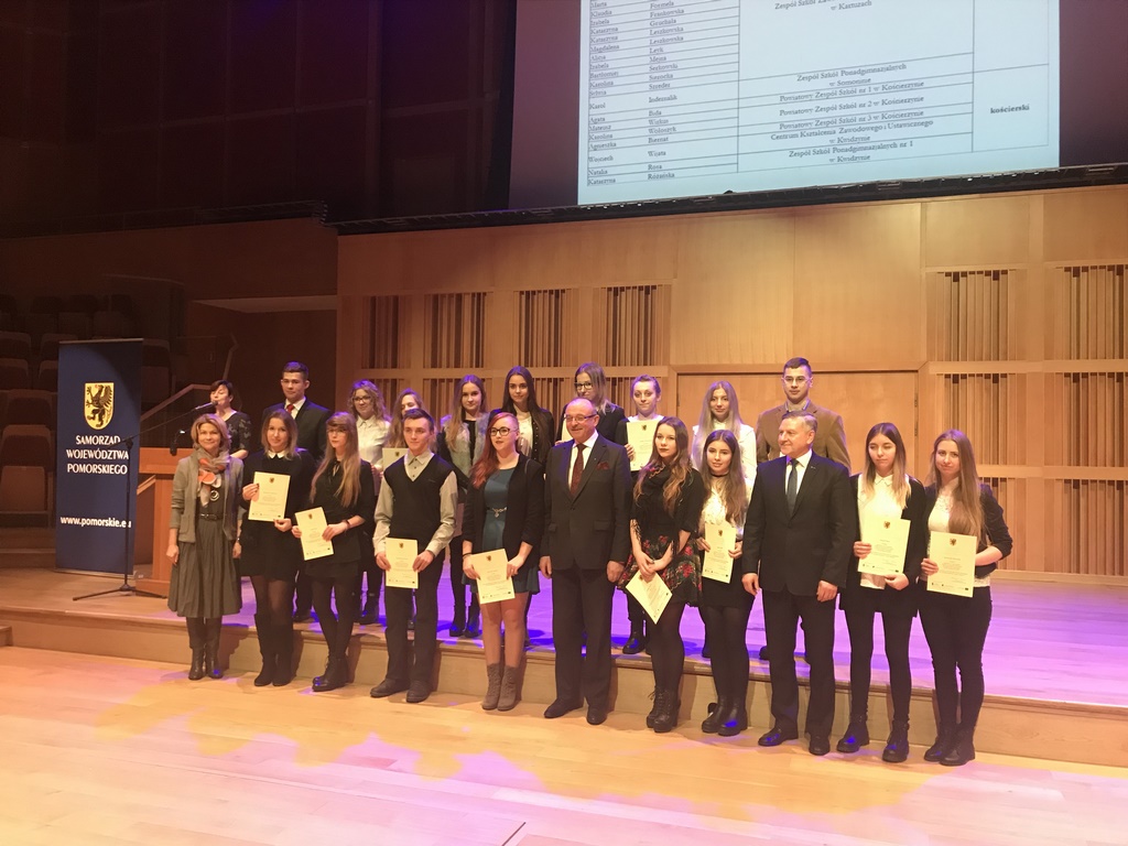 W dniu18 grudnia 2017 roku w gmachu Filharmonii Bałtyckiej im. Fryderyka Chopina w Gdańsku nasi uczniowie wraz z wicedyrektor Joanną Stencel brali udział w uroczystości wręczania stypendium. W trakcie Gali wręczono Stypendia Marszałka Województwa Pomorskiego przyznane na rok szkolny 2017/2018, finansowane ze środków europejskich dla uczniów uzdolnionych, w szczególności w zakresie przedmiotów matematycznych, przyrodniczych, informatycznych i języków obcych. Wyróżnionymi uczniami w naszej szkole są:
