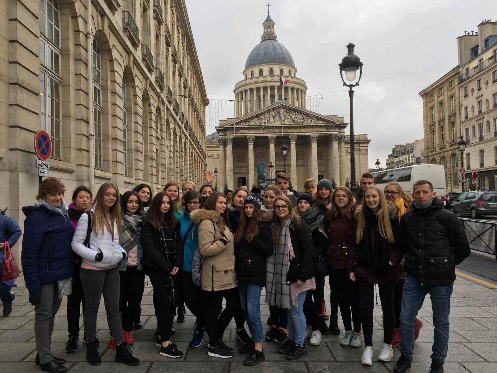 Na przełomie listopada i grudnia 2017 r. uczniowie ZSZ i O w Kartuzach z klasy II LO d, IV TE b, I LO d, III TH, i II LO c wraz z wychowawcami: p. Ewą Chrapkowską i p. Rafałem Makurat uczestniczyli w wycieczce zagranicznej do Francji. Celem podróży było zwiedzenie najpiękniejszego miasta w Europie – Paryża, w którym spędziliśmy 4 dni. Po długiej podróży z niecierpliwością czekaliśmy na pierwszy dzień pobytu w Paryżu, w którym zwiedziliśmy m.in. Katedrę Notre Dame, odbyliśmy spacer najdroższą ulica świata Champs Elysees od Łuku Triumfalnego do Placu Concorde. Przez kolejne dni udało nam się zobaczyć największe muzeum świata – Luwre, czyli dawny pałac królewski, bazylikę Sacre – Coeur, którą wybudowano na najwyższym wzniesieniu w Paryżu, czyli na wys. 130m., płynęliśmy statkiem po Sekwanie. Najciekawsza atrakcja naszej wycieczki był wjazd na sam szczyt wieży Eiffla, z której zobaczyliśmy wspaniałą panoramę Paryża z wysokości 300 m. n. p. m. Wróciliśmy do Polski zadowoleni oraz pełni wrażeń.