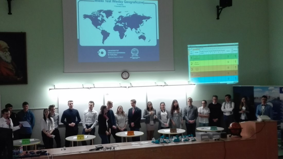 7 kwietnia przedstawicielki klasy III LOC: Julia Lewna, Dagmara Damc, Natalia Grotha oraz klasy II LOC : Kinga Plichta, Paulina Bach i Patrycja Hinc brały udział w V edycji konkursu - Wielki Test Wiedzy Geograficznej organizowanym przez Wydział Nauk o Ziemi UMK w Toruniu. Oprócz sprawdzenia swojej wiedzy w teście uczestniczyły w warsztatach geograficznych dotyczących Geocachingu oraz wypraw na Spitsbergen.