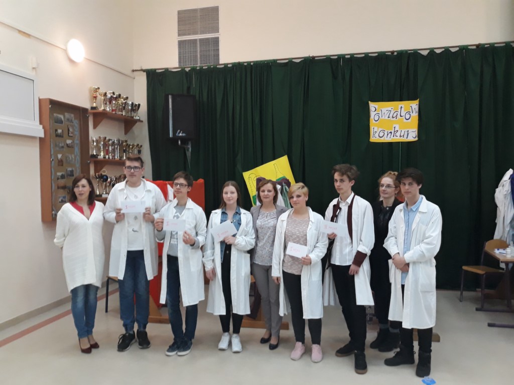 Dnia 23 kwietnia 2018 w I LO w Kartuzach odbył się etap powiatowy konkursu chemicznego „ Burza w szklance wody”. Konkurs skierowany był do uczniów klas 1 szkół ponadgimnazjalnych lubiących przyrodę i zagadki. Z naszej szkoły udział w konkursie wzięły dwie uczennice z I LO d : Agata Pipka oraz Kaja Denis. Uczennice miały za zadanie rozwiązać zagadki w stylu Escape- Room w „ pokoju szalonego chemika” jak również brały udział rozgrywkach drużynowych, w których zajęły II miejsce. Na zakończenie konkursu odbył się pokaz ciekawych eksperymentów chemicznych prowadzony przez ekspertów z Centrum Chemii w Małej skali z Torunia.