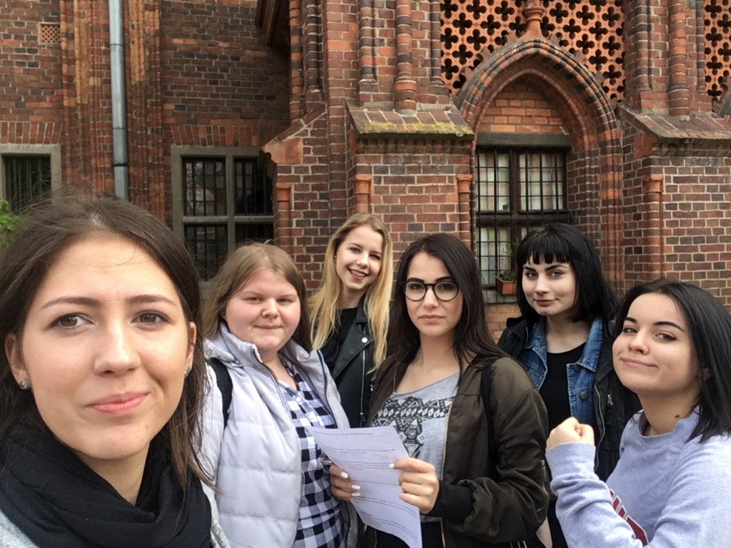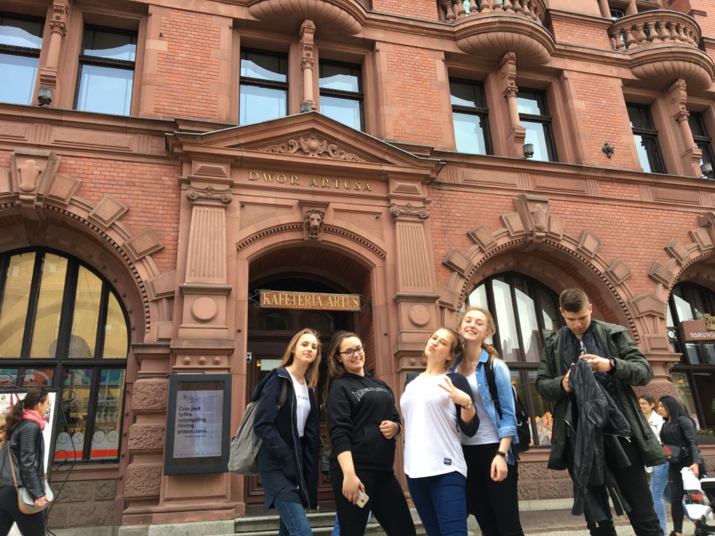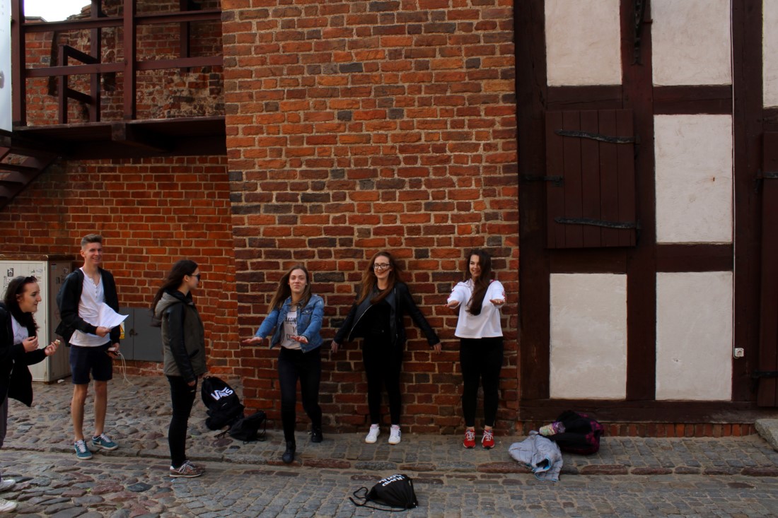 Dzień pierwszy: W dobrych nastrojach, wyposażeni w nadzieję na piękną pogodę z zapasem kolorów Kaszub, wyruszamy na podbój fragmentu centralnej Polski. Pierwszy przystanek – Toruń. Przecudne miasto Mikołaja, wita nas promieniami słońca, blask bije od królowej polskich rzek – Wisły, zmierzamy na Stary Rynek. Tu niespodzianka, podział na zespoły, każda grupa dostaje zadania i rozpoczynamy grę miejską „Gotyk na dotyk”. Nasze zadanie to odnalezienie konkretnych zabytków, miejsc i udzielenie odpowiedzi na pytania. Mamy ograniczony czas i utrudnienie w postaci dokumentacji fotograficznej. Zespoły obierają różną taktykę – niektóre ruszają od razu na poszukiwania, inne dokonują analizy zadań. Po dwóch godzinach grupy meldują się pod pomnikiem Mikołaja z wykonanymi zadaniami, zachwyceni i dumni ze swoich dokonań. Zwieńczeniem naszego obcowania z „Grodem Pierników” było spojrzenie na miasto z wysokości wieży ratusza... Czas pożegnać Toruń, pozostawiamy za sobą panoramę miasta z punktem centralnym, którym jest katedra św. Janów.