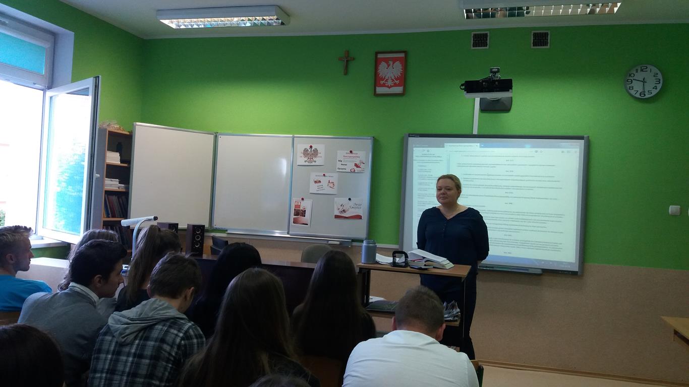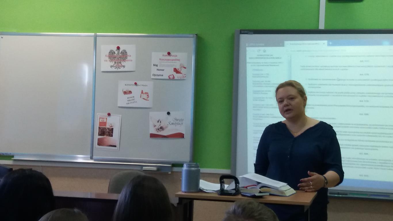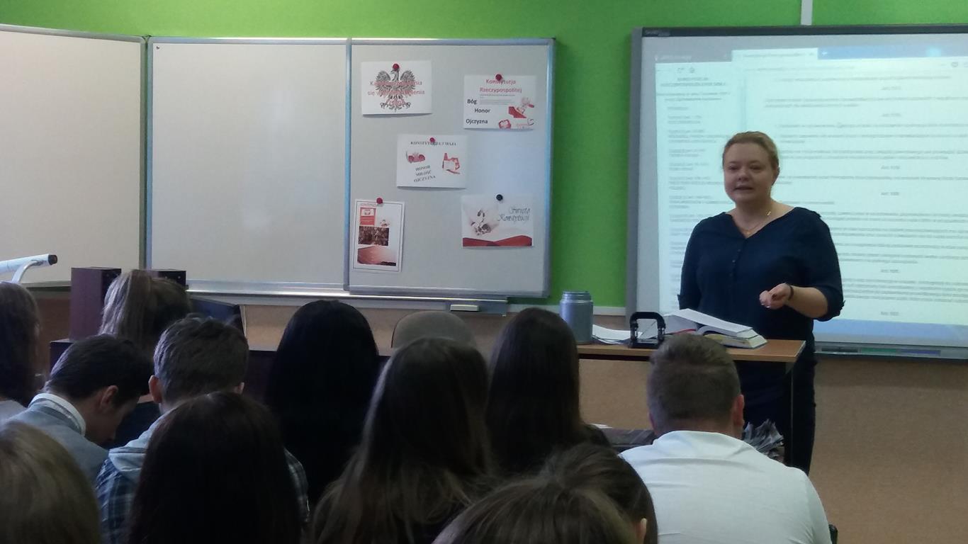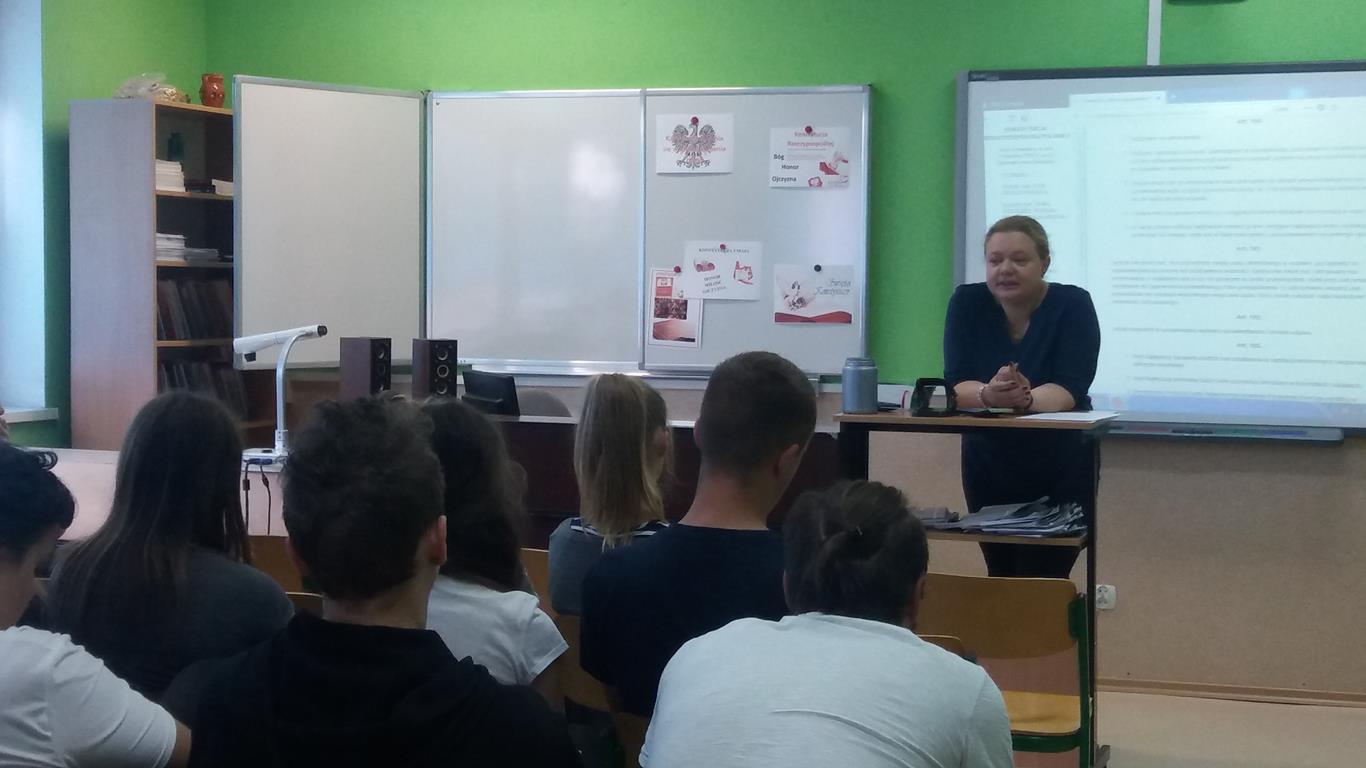 „Dlatego tak, jak się prowadzi dzieci szkolne do muzeum czy na koncert, tak samo powinno się przybliżać im prawo. I uczyć, że z natury rzeczy przeznaczone jest ono do funkcjonowania w świecie, który nie jest doskonały. Jak prawo karne, które działa wobec tych, którzy prawo łamią. I trzeba uczyć, że prawo jest po to, żeby żadnej władzy nie przyszło do głowy hulać zanadto.” – słowa prof. Ewy Łętowskiej wypowiedziane w związku z organizowaną przez Stowarzyszenie im. Prof. Zbigniewa Hołdy akcją edukacyjną Tydzień Konstytucyjny „Moja Konstytucja”. Podczas wydarzenia prawnicy (adwokaci, radcowie prawni, aplikanci, sędziowie, pracownicy naukowi, pracownicy organizacji pozarządowych) udają się do szkół, aby przeprowadzić lekcje i zwrócić uwagę na praktyczny wymiar obowiązywania Konstytucji i działalność Trybunału Konstytucyjnego. W środę 6 czerwca w przystępny i interesujący sposób asesor sądowy Patrycja Bona przeprowadziła warsztaty dla klasy kl.I TE, II TE, III TE, II TOR, II TOI. Podczas czterogodzinnych warsztatów p. Patrycja pokazała, że problematyka konstytucyjna ma bezpośredni wpływ na codzienne życie każdego z nas. Ponadto promowała świadome obywatelstwo, zachęcała młodych ludzi do większego zainteresowania się sprawami publicznymi i zwracała ich uwagę na kluczową rolę sądów powszechnych w stosowaniu prawa w Polsce, przy uwzględnieniu nadrzędnej roli Konstytucji. W czwartek natomiast uczniowie kl. III TH mieli wyjątkową lekcję wychowawczą, bo połączoną z udziałem w rozprawie karnej w sądzie rejonowym w Kartuzach. Celem lekcji wychowawczej było zwiększenie świadomości prawnej wśród nastolatków, w szczególności skierowanej na prawne konsekwencje czynów zabronionych. Rozprawa w sądzie wywarła na młodzieży ogromne wrażenie. To najlepsza forma zwiększenia świadomości i odpowiedzialności za własne czyny.