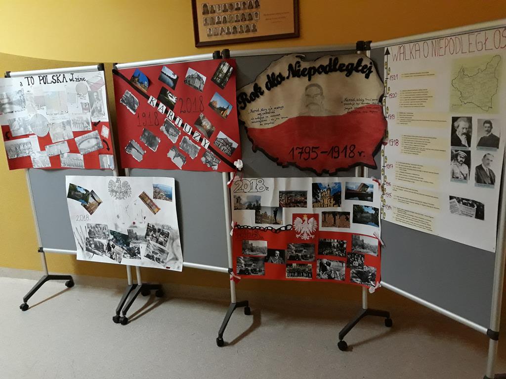 To szklony konkurs na samodzielne stworzenie, dowolną techniką i z dowolnych materiałów pracy plastycznej, kolażu. Praca związana jest z tematyką Polski w latach 1918 – 2018. Na konkurs wpłynęło dwadzieścia prac, które obecnie są prezentowane na wystawie szkolnej.