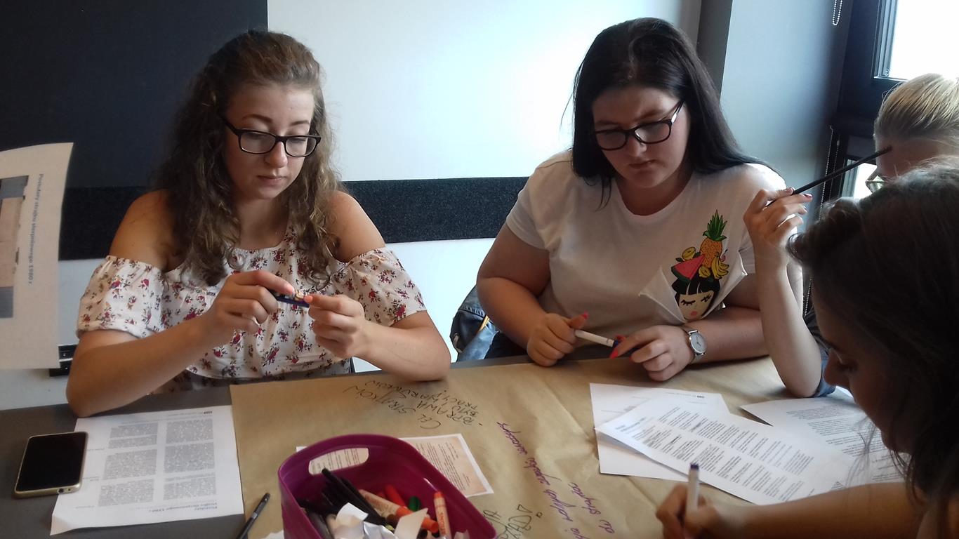 Wakacje na wyciągniecie ręki, a my nie odpuszczamy! Młodzież z klasy pierwszej i drugiej TOR uczestniczyła w zajęciach proponowanych przez Europejskie Centrum Solidarności, był to pakiet edukacyjny „Wolność”. Zajęcia składały się z dwóch bloków: „NARODZINY SOLIDARNOŚCI”, gdzieuczestnicy zajęć na podstawie materiałów archiwalnych przeanalizowali kulisy i najważniejsze momenty strajku w Stoczni Gdańskiej im. Lenina w sierpniu 1980 roku. Odkryli, jak wielka siła tkwi w jedności i jak wiele można zdziałać solidarnie. Młodzież poznała losy ludzi, którzy aż do częściowo wolnych wyborów w czerwcu 1989 roku nie opuścili szeregów Solidarności, nawet wówczas, gdy nie zgadzali się z działalnością jej liderów; „GRANICE WOLNOŚCI SŁOWA W INTERNECIE” – wolność słowa jest jednym z podstawowych praw obywatelskich. Może jednak stać się zarówno wartością twórczą dla demokracji, jak i narzędziem szerzenia mowy nienawiści.