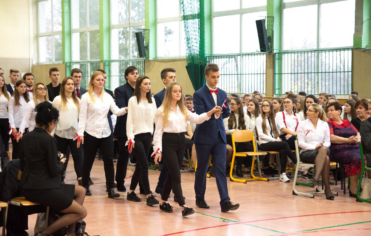 Jeszcze w uszach wybrzmiewają nuty hymnu, a na sali słychać znajome dźwięki - krokiem poloneza wkraczają przyszli maturzyści, którzy prezentują układ taneczny; witani i żegnani burzą braw. Teraz czas na montaż słowno – muzyczny…. artyści przypominają losy naszej Ojczyzny: bolesny upadek, życie w niewoli, zrywy powstańcze i RADOSNE ODRODZENIE!!! Obraz, słowo, muzyka wszystko działa na zmysły. Widzowie wędrują po kartach historii, tak samo jak wykonawcy, następuje wspaniała integracja wszystkich uczestników i widzów. Na koniec wybrzmiewa utwór „Wolność”...