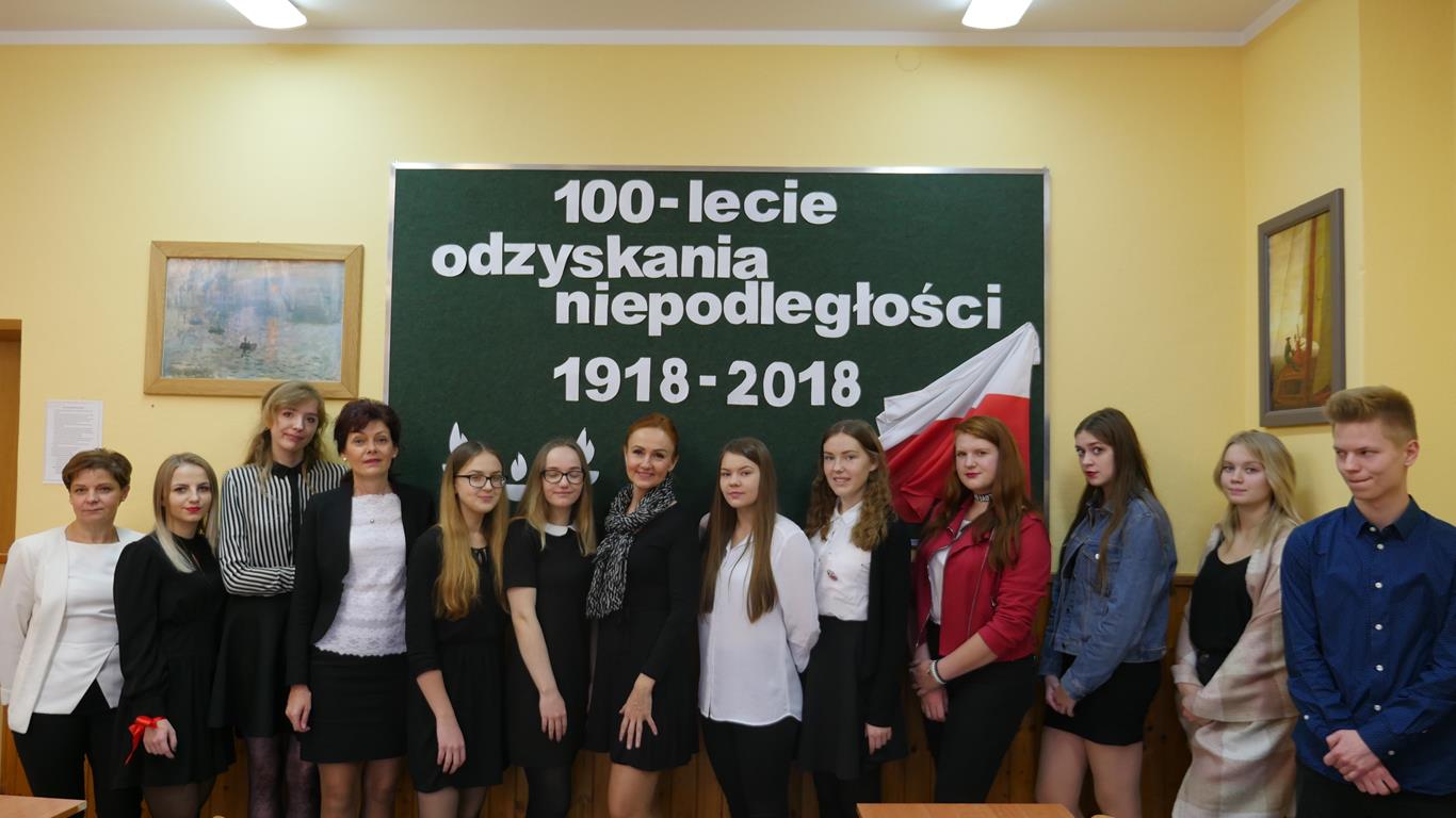 Jednym z zadań szkolnego projektu „Rok dla Niepodległej” był konkurs poetycki, składający się z dwóch elementów: recytacji oraz twórczości własnej. Młodzież przygotowała utwory patriotyczne, które zaprezentowała jury w składzie: p. J. Kosanceka, B. Paczoska i J. Kluge. Z informacji uzyskanych od składu sędziowskiego wiemy że: „ Młodzież była dobrze przygotowana, prezentowali dobry poziom, przedstawili ciekawe utwory” – taka postawa cieszy!