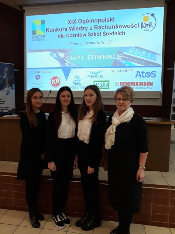 W dniu 5 grudnia na Uniwersytecie Mikołaja Kopernika w Toruniu odbył się XIX Ogólnopolski Konkurs Wiedzy z Rachunkowości, w którym brały udział najlepsze uczennice z ZSZiO w Kartuzach: Alicja Leyk, Ewelina Damaszk i Oliwia Żołądź wszystkie z klasy IV Technikum Ekonomicznego.
