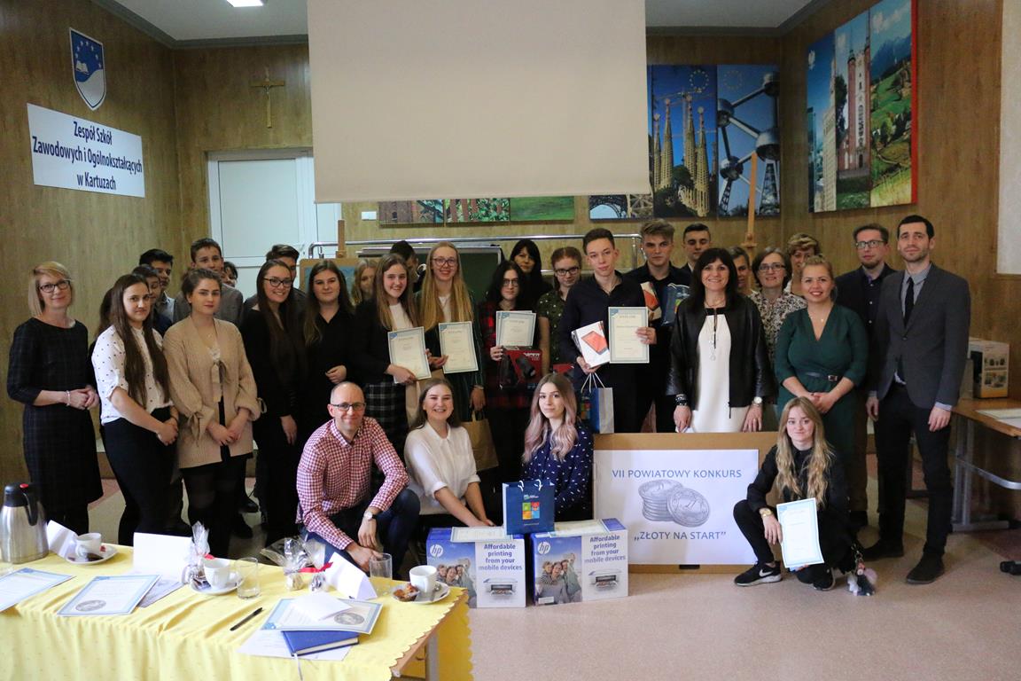 ZSZiO w Kartuzach po raz 7. zorganizowało finał Powiatowego Konkursu „Złoty na Start”, w którym wzięło udział 28 uczniów z 7 szkół: SP w Kamienicy Królewskiej, SP w Pomieczyńskiej Hucie, SP w Egiertowie, ZST w Kartuzach, ZSP w Somoninie, II LO w Kartuzach i ZSZiO w Kartuzach. Celem było wyłonienie najlepszych pomysłów na działalność gospodarczą na terenie powiatu kartuskiego. Jury w składzie: p. Małgorzata Bronk z PUP, p. Krzysztof Świętalski z WUP, p. Piotr Lewna z Urzędu Gminy w Żukowie, p. Tomasz Frankowski z firmy Frankopol i p. Marek Zaborowski z firmy Bema oceniali pomysłowość, sposób prezentacji i przede wszystkim realność pomysłów.