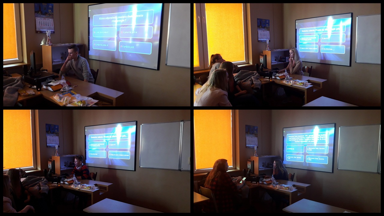 Później odbył się maturalny test "Planimetria i stereometria", gdzie osiem uczniów zdobyło maksymalną liczbę punktów: Karolina Benkowska (4TE), Tomasz Wenta (3LOc), Aleksandra Mielewczyk (3LOc), Kamila Labuda (4TOR), Joanna Bertling (3LOc), Aleksandra Płotka (4TOR), Katarzyna Gruchała (4TOR), Aleksandra Hopa (3LOc).
