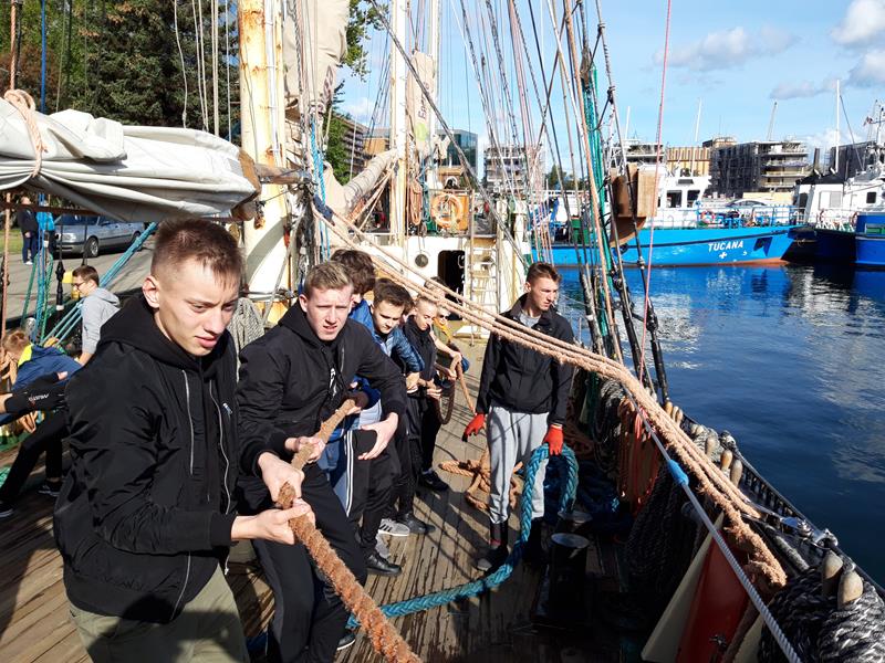 W ramach tego przedsięwzięcia przy pięknej słonecznej pogodzie uczestnicy odbyli rejs po Zatoce Gdańskiej na słynnym jachcie morskim należącym do Związku Harcerstwa Polskiego „Zawiszy Czarnym”. „Zawiszą” dowodził kpt. Wiktor Wróblewski, a pomagała mu załoga i wolontariusze. Uczestnicy nie byli jedynie gośćmi na pokładzie. Zobaczyli jak wygląda życie na jachcie, samodzielnie wykonywali prace pokładowe, a także poznali historię żaglowca i elementy jego wyposażenia. Następnie uczniowie wzięli udział w prezentacji dotyczącej roli i zasad działania samorządu terytorialnego. Lekcja samorządności odbyła się w siedzibie Pomorskiego Związku Żeglarskiego. Dziękujemy p. Hannie Kajecie oraz p. Dariuszowi Olejniczakowi za pomoc w organizacji wyjazdu.