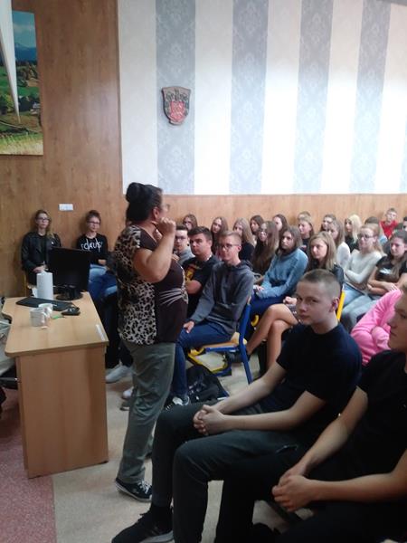 Pani nadkomisarz mgr Elwira Lelental, prezes Fundacji Nowe Życie w bardzo przystępny i ciekawy sposób omówiła skutki prawne, psychiczne i fizyczne zażywania narkotyków. Uczniowie naszej szkoły na długo zapamiętają tę wizytę i rady, jakich udzieliła im Pani Elwira Lelelntal.