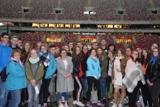 Dzięki działalności Stowarzyszenia dla Rozwoju Edukacji przy ZSZiO, grupa młodzieży ze „Wzgórza”, mogła po raz kolejny wybrać się do Warszawy na kilkudniową wyprawę. Już pierwszego dnia, podziwialiśmy Plac Zamkowy i Starówkę, a PGE Narodowy przywitał nas grą świateł. Mieliśmy możliwość przebywać w szatni naszej reprezentacji, najdroższej loży VIP – owskiej oraz na trybunach. Przeszliśmy wyjściem piłkarzy na płytę stadionu, podziwialiśmy właśnie układaną murawę, na niedzielny mecz reprezentacji – wspaniałe chwile... Drugi dzień naszej stołecznej przygody rozpoczęliśmy edukacją obywatelską – czyli zajęciami w sejmie RP. Tam poznaliśmy historię parlamentaryzmu w Polsce, historię budynku, a przede wszystkim zasady działania władzy ustawodawczej. Słoneczna pogoda sprawiła że nasz spacer do Łazienek Królewskich był naprawdę udany.