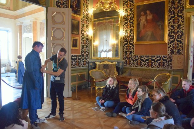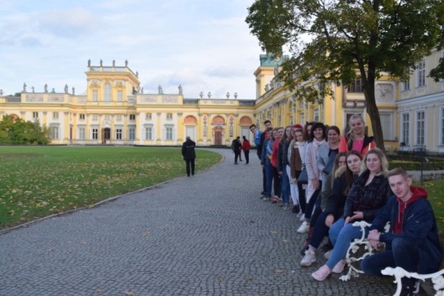 W samym parku podziwialiśmy znajdujące się tam obiekty, realizując zadania z kart pracy. Zwieńczeniem tych działań było zwiedzenie Pałacu na Wyspie – rezydencji ostatniego króla Polski. Kolejny punkt w programie to Wilanów – również rezydencja królewska, ale pogromcy Turków spod Wiednia. W przepięknych barokowych salach, za pan brat z polskim szlachcicem zgłębialiśmy tajniki sarmackiego dworu – był to główny temat zajęć organizowanych przez muzeum, w których braliśmy udział. Ostatni dzień to przede wszystkim „śniadanie w Pałacu Prezydenckim”... Wprawdzie śniadanie zjedliśmy w własnym gronie ale potem było zwiedzanie siedziby prezydenta i zachwyt Salą Kolumnową, Białą i każdą inną. Na koniec naszej wizyty złożyliśmy hołd przy Grobie Nieznanego Żołnierza, przywitaliśmy się z Józefem Piłsudskim i Mikołajem Kopernikiem oraz Adamem Mickiewiczem, Bolesławem Prusem i posiedzieliśmy na ławeczce z ks. Twardowskim. Jeszcze spacer w Parku Saskim, Krakowskim Przedmieściem, Nowym Światem i rzut oka na Pałac Kultury i Nauki – czas wracać do domu. Dziękujemy naszym opiekunkom pani Marlenie Meisner - Kwiatkowskiej, Iwonie Cyrockiej i Justynie Kosaneckiej oraz Stowarzyszeniu, za zorganizowanie „Wyprawy do stolicy”.