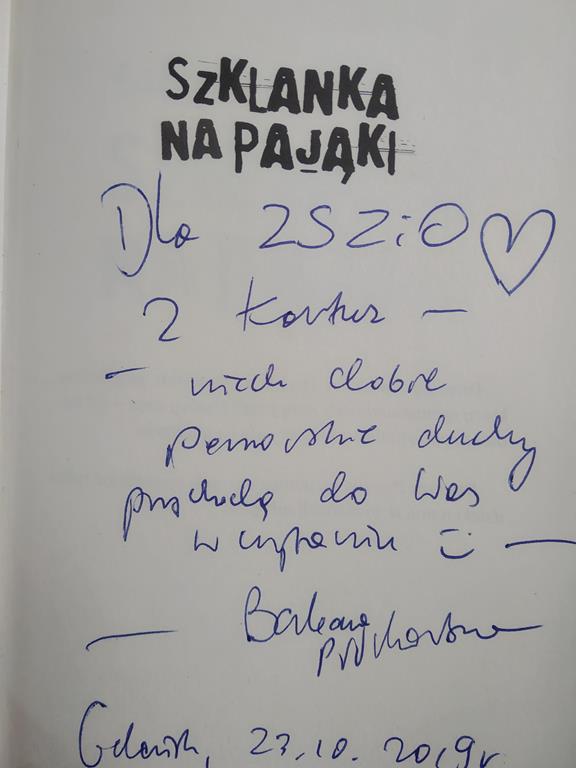 Główna bohaterka Szklanki na pająki, malarka Aleksandra, opisuje świat przez poezję i barwę. Żyje w momentach historycznych, mieszka w bloku razem z Lechem Wałęsą, chodzi z jego dziećmi do podstawówki; choruje, maluje, dojrzewa w czasach przemian politycznych. Ale trochę to nieważne… My już wiemy dlaczegoJ Zapraszamy Was wszystkich do odkrywania różnych perspektyw literackich.