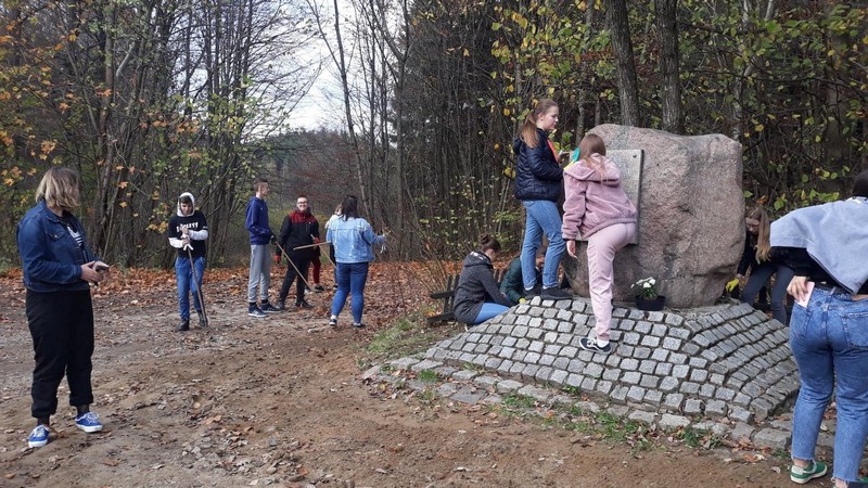 - we wtorek (29 X 2019 r.) uczniowie klasy I LO c udali się na pomnik pomordowanych nauczycieli z powiatu kartuskiego w czasie II wojny światowej,