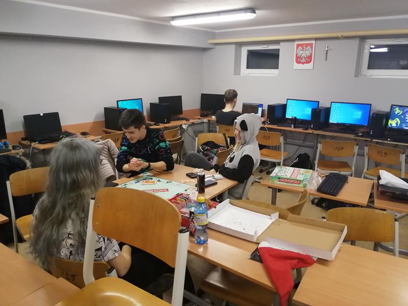 06 grudnia rozpoczęła się nocka w naszej szkole. Udział w niej wzięli uczniowie klasy 3TI pod opieką pana Ryszarda Kąkola. O godz. 19:00 młodzież weszła do szkoły, aby tam do godz. 6.00 pogłębiać wiedzę z zakresu tworzenia stron internetowych, sieci komputerowych, ale także korzystać z gier komputerowych, planszowych oraz gier i zabaw sportowych. Rano wszyscy uczniowie mimo zmęczenia, zadowoleni rozeszli się do domu.