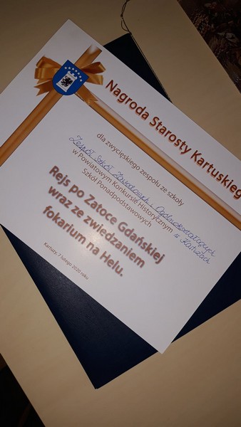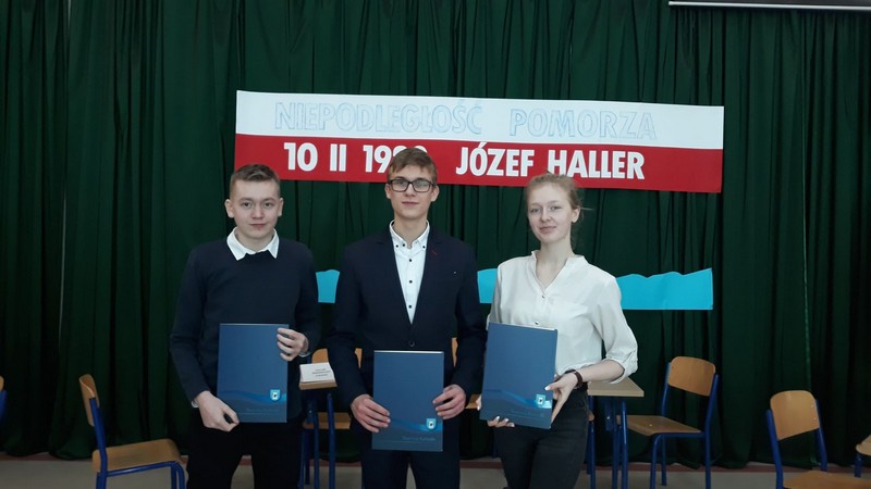 Uczniowie szkół ponadgimnazjalnych spotkali się 7 lutego 2020 r. na konkursie zorganizowanym przez Starostę kartuskiego, w ramach obchodów setnej rocznicy powrotu Pomorza do Rzeczpospolitej. W auli Zespołu Szkół Ogólnokształcących nasi uczniowie zmierzyli się z siedmioma pytaniami dotyczącymi dziejów naszego regionu, kończąc rywalizację na podium i wygrywając m.in. czerwcowy rejs po Zatoce Gdańskiej.