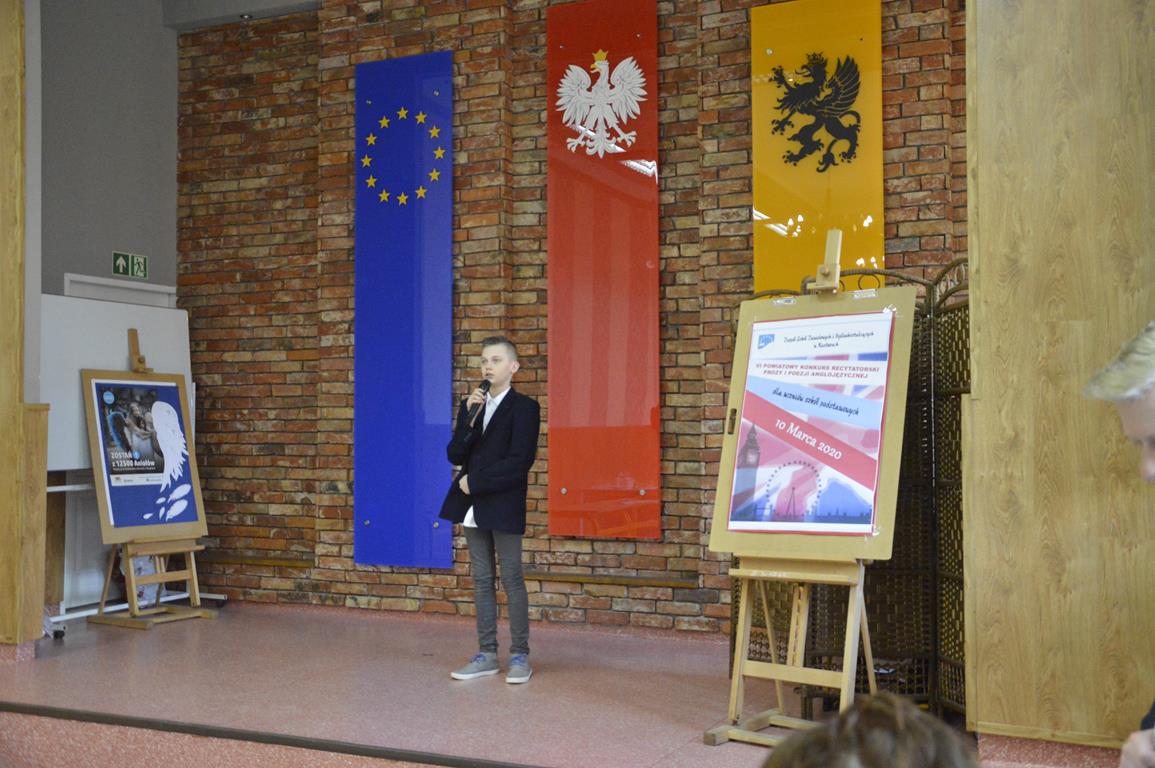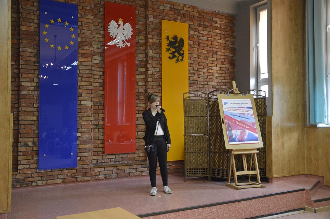 Dnia 10.03.2020r. w naszej szkole odbył się VI Powiatowy Konkurs Prozy i Poezji Anglojęzycznej dla uczniów szkół podstawowych zorganizowany przez nauczycieli języka angielskiego: p. Sylwię Woelkę i p. Arkadiusza Ulenberga. Spośród 19 uczestników jury wyłoniło trójkę zwycięzców oraz pięć wyróżnień. Konkurs wygrała Amelia Krause ze Szkoły Podstawowej w Borczu. Między występami uczestnicy mieli okazję wysłuchać uzdolnionych wokalnie członków zespołu muzycznego działającego w szkole „na Wzgórzu”. Po zakończonym konkursie młodzież oprowadziła uczestników konkursu pokazując im naszą szkołę. Dziękujemy i gratulujemy wszystkim uczestnikom!