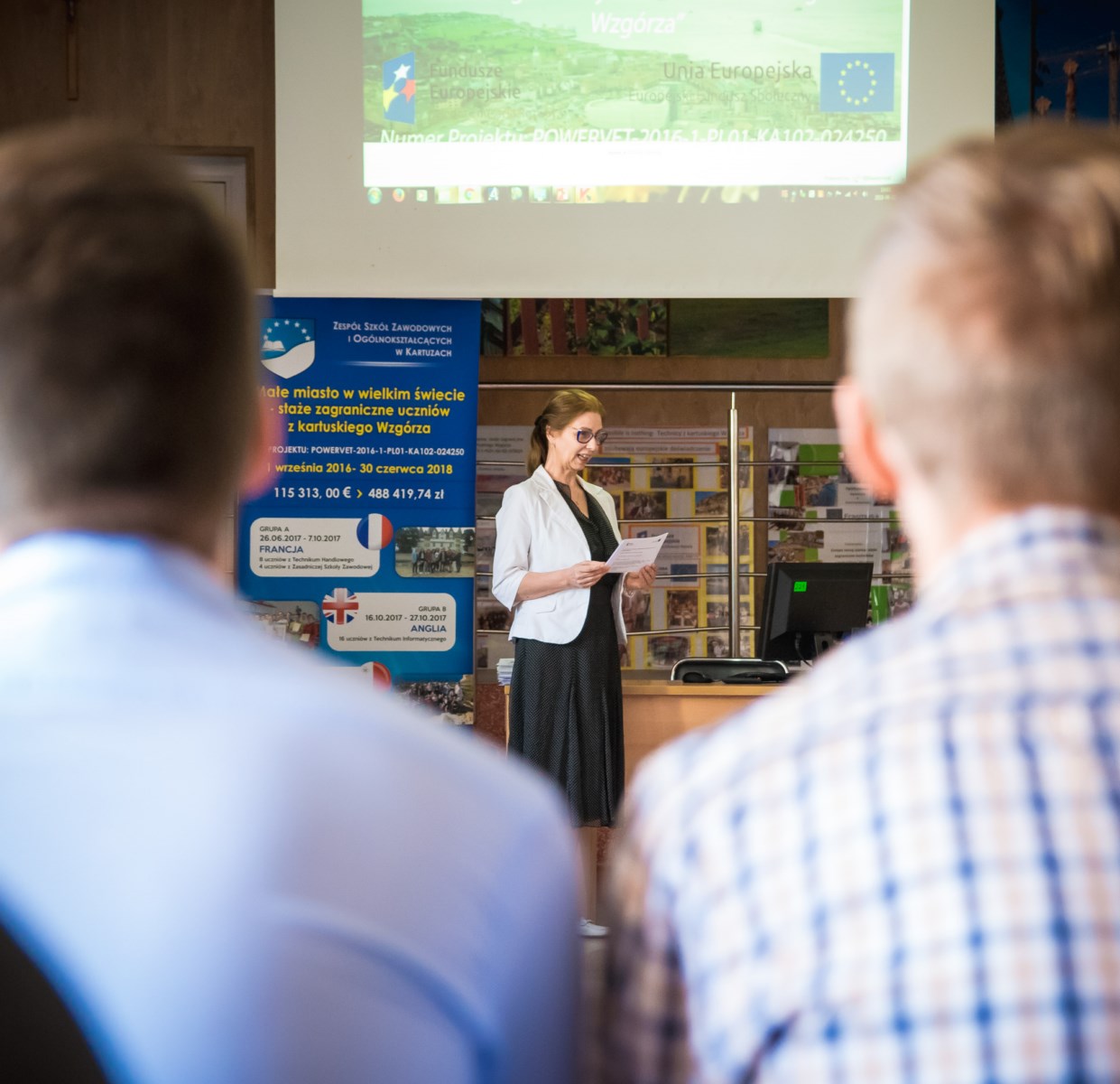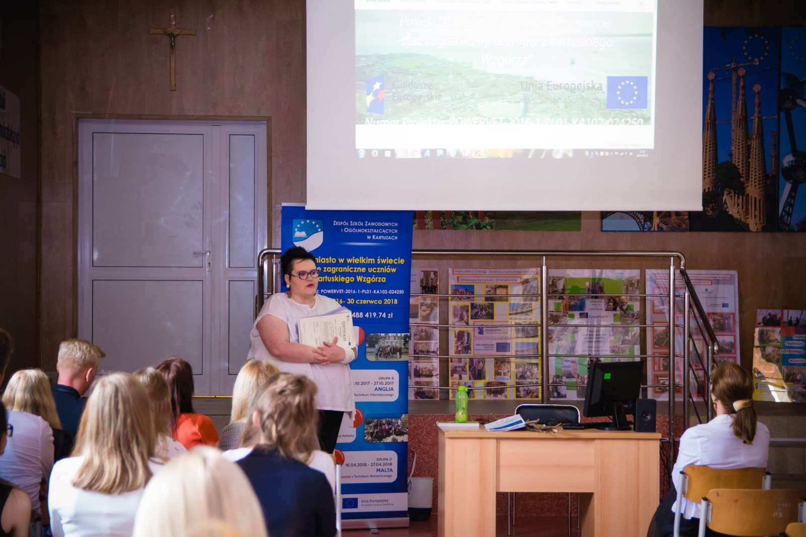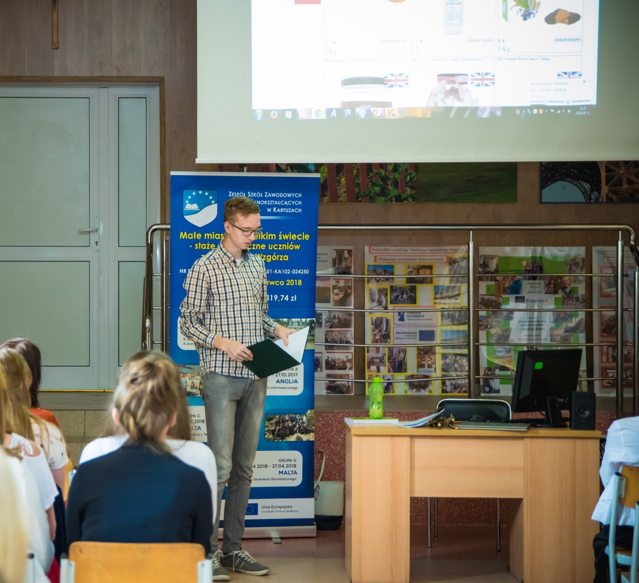 11 czerwca, 2018 roku w Auli Zespołu Szkół Zawodowych i Ogólnokształcących w Kartuzach odbyło się spotkanie podsumowujące realizację projektu Małe miasto w wielkim świecie- staże zagraniczne uczniów z kartuskiego Wzgórza nr umowy: POWERVET-2016-1-PL01-KA102-024250.