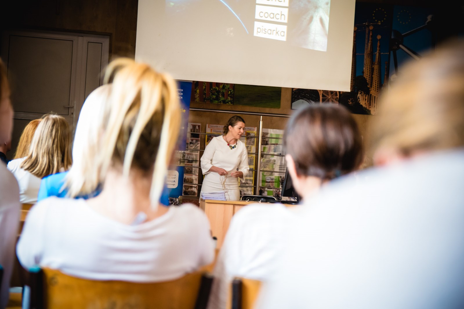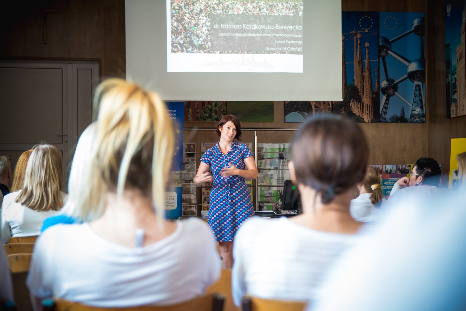 Wszystkich przybyłych przywitała pani Dyrektor Szkoły Grażyna Maczulis. Następnie Magda Tusk i Andżelika Leyk przedstawiły przygotowaną przez Martynę Fiołek i Weronikę Kosater prezentację dotyczącą działań projektowych. Zebrani wysłuchali także dwóch wykładów: Dr Nataszy Kosakowskiej- Berezeckiej , psycholożki interkulturowej z Uniwersytetu Gdańskiego pt : „ Dlaczego ludzie inteligentni kulturowo są szczęśliwsi? I trenerki biznesu, coacha i pisarki Marzeny Grochowskiej: „Przekraczaj granice”.