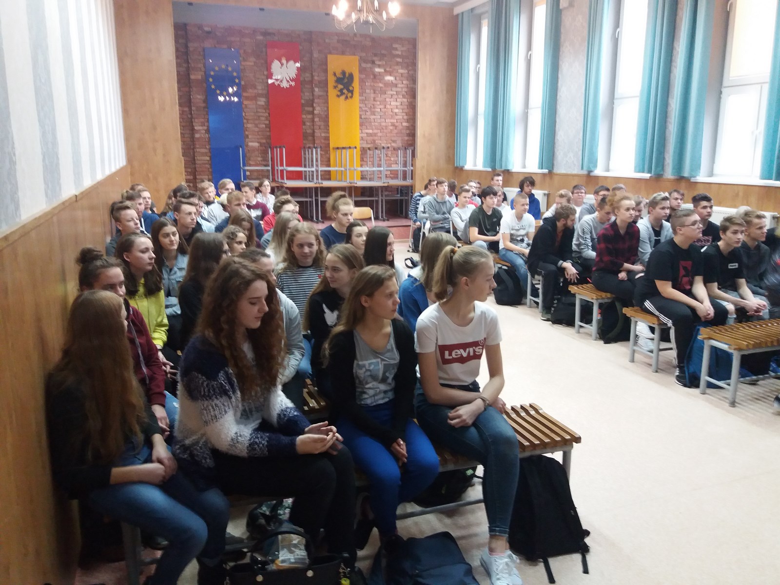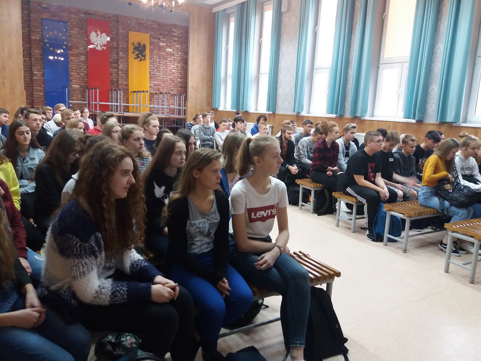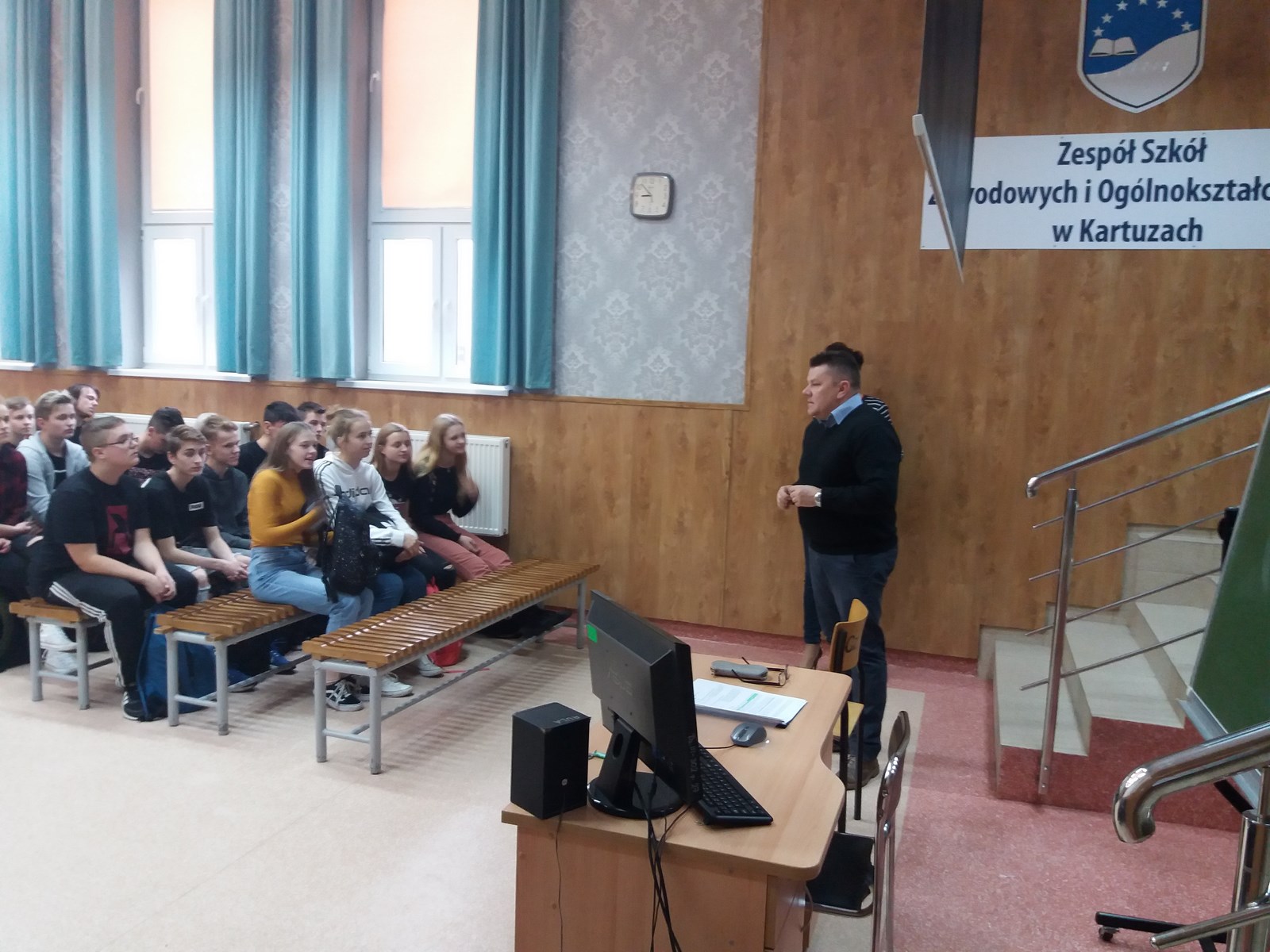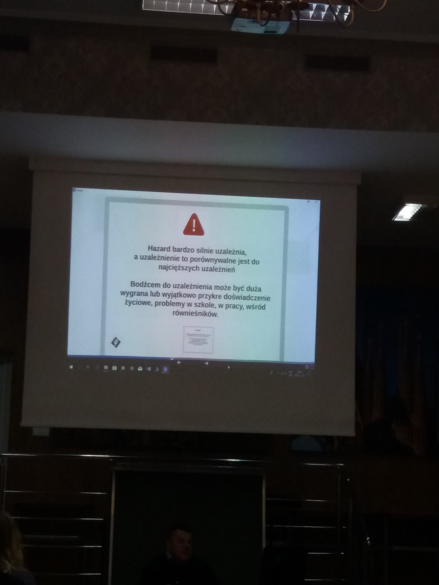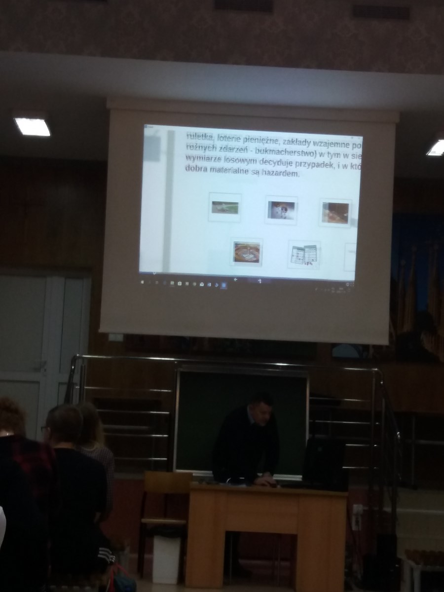 14 listopada odbyło się szkolenie dla uczniów klas pierwszych przeprowadzone przez pana Leszka Behmke z Pomorskiego Urzędu Celno-Skarbowego w Gdyni. Spotkanie przeprowadzono w ramach ogólnopolskiej kampanii informacyjno-edukacyjnej Krajowej Administracji Skarbowej, prowadzonej pod hasłem „Hazard? Nie, dziękuję”.