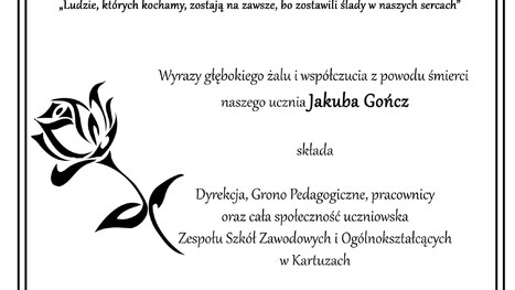 Kondolencje z powodu śmierci naszego ucznia Jakuba Gończa