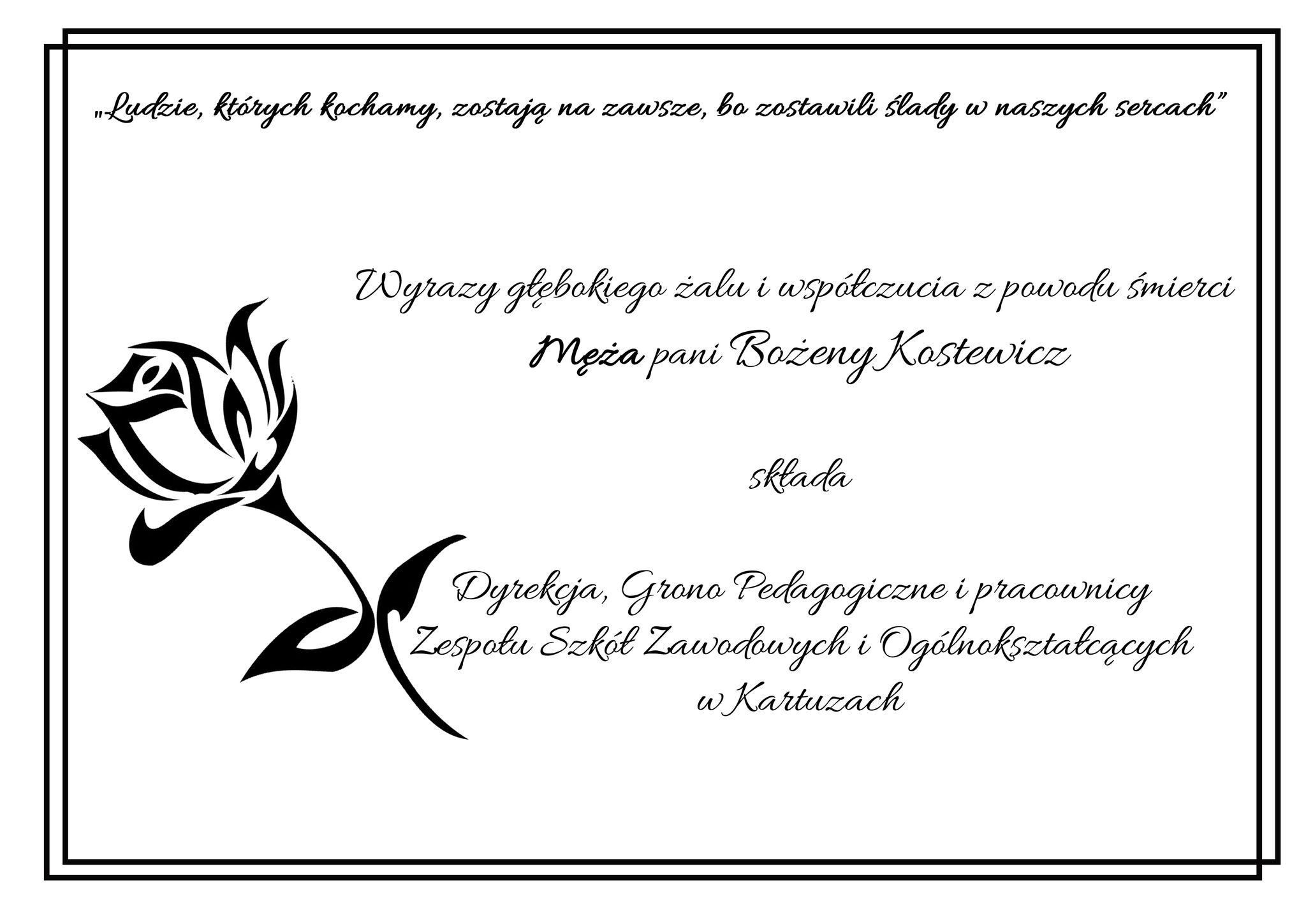 Wyrazy głębokiego żalu i współczucia z powodu śmierci Męża pani Bożeny Kostewicz