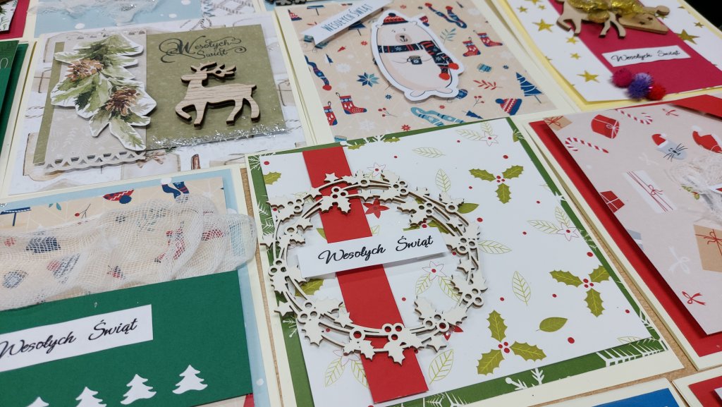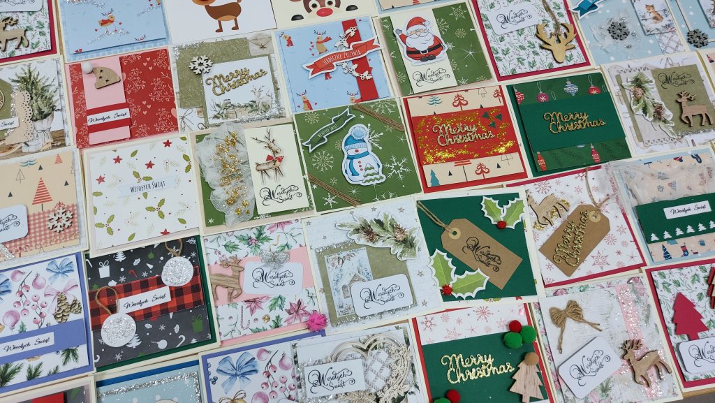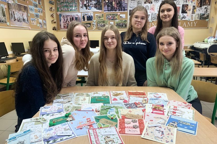 Innowacja „Reklamowe wycinki” pod opieką pań Darii Klaman i Renaty Rybakowskiej zaowocowała pięknymi kartkami świątecznymi, które można było zobaczyć na szkolnym kiermaszu.