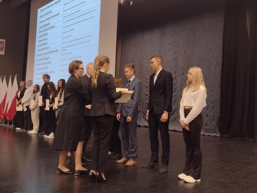 Z przyjemnością informujemy, że z naszej szkoły dyplomy wręczane przez Wicewojewodę Pomorskiego Mariusza Łuczyka i Pomorskiego Kuratora Oświaty Małgorzatę Bielang odebrali uczniowie Jagoda Pakur z klasy II LO c, Dominik Walaszkowski z klasy II TE i Konrad Cichosz z klasy IV TI g.