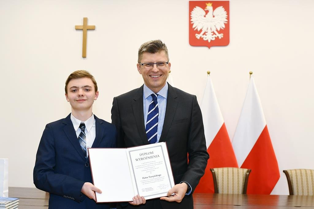 3 marca 2023 roku grupa 12 uczniów z klasy II TE i I TE w osobach: Katarzyna Bladowska, Julia Eron, Wiktoria Goitowska, Kaja Joskowska, Julia Reiter, Natalia Richert, Wiktoria Żołądz, Dominik Wałaszkowski, Łukasz Gołąbek, Piotr Turzyński, Daniel Zaborowski i Olivier Jasek otrzymała wyróżnienie w Ogólnopolskim konkursie „Problemy prawa? Prosta sprawa!”. Naszym opiekunem merytorycznym była pani Joanna Stencel. Konkurs polegał na samodzielnym opracowaniu scenariusza, zainscenizowanie i nagranie rozprawy sądowej na podstawie wylosowanego stanu faktycznego. Nagrody wręczył wiceminister sprawiedliwości Marcin Warchoł.