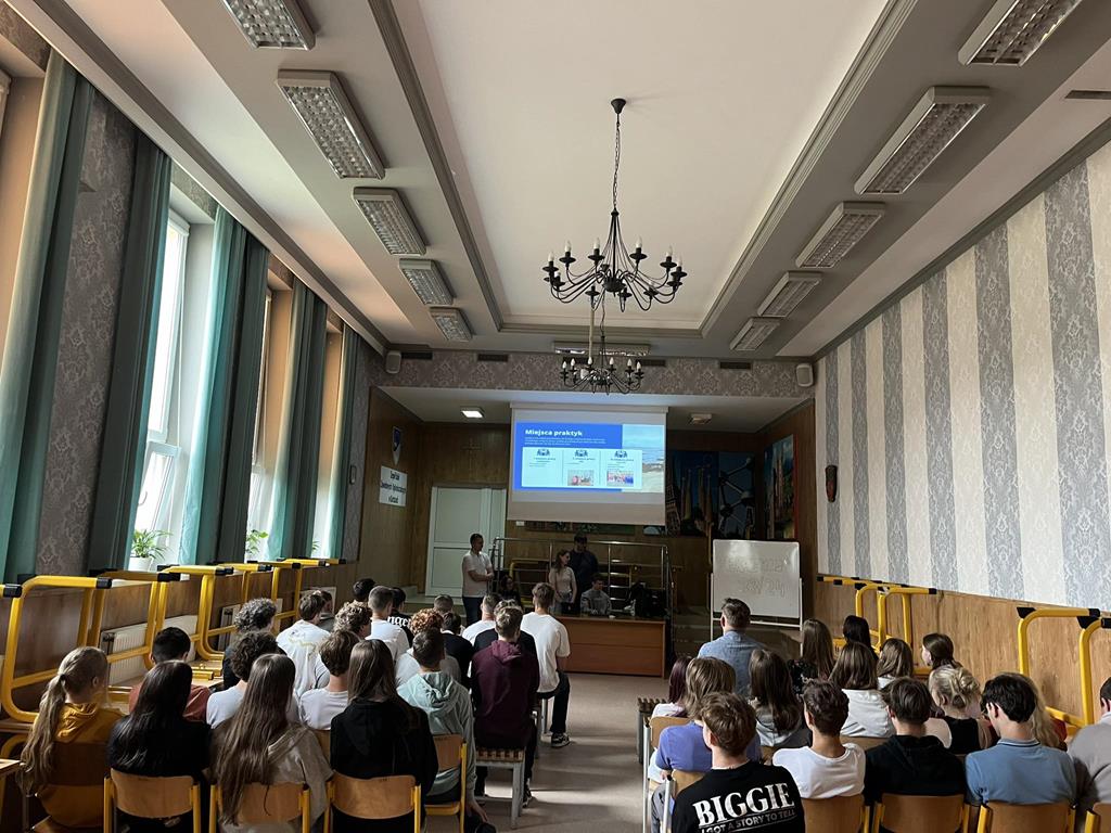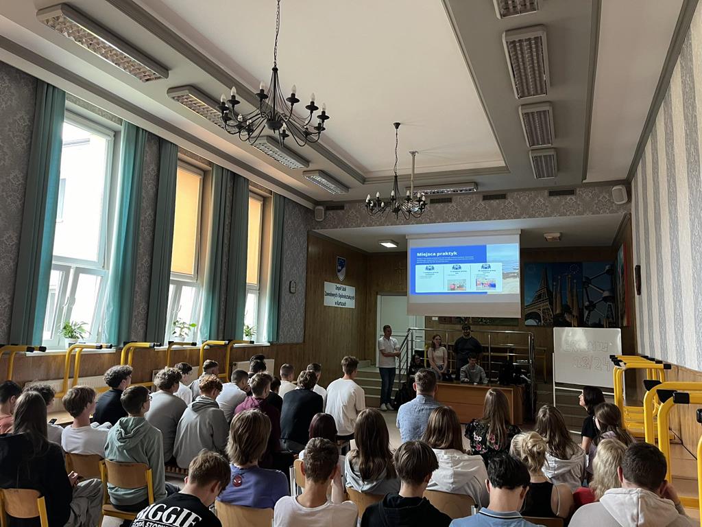 Młodzież 7 czerwca zorganizowała spotkanie dla kolegów i koleżanek z klas II technikalnych celem zapoznania ich z kulisami staży. Dzięki temu spotkaniu dowiedzieli się jak wygląda przebieg praktyk, w jaki sposób są zorganizowane oraz jak mogą wziąć w nich udział.