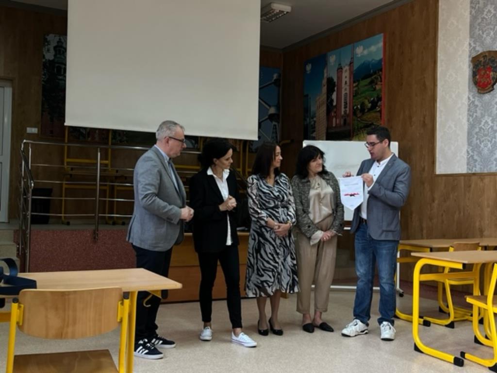 Pierwszego dnia wszystkich uczestników uroczyście przywitała w szkole Pani Dyrektor Joanna Stencel, podsumowując dotychczasową współpracę szkół, która trwa nieprzerwanie od ponad 20 lat.