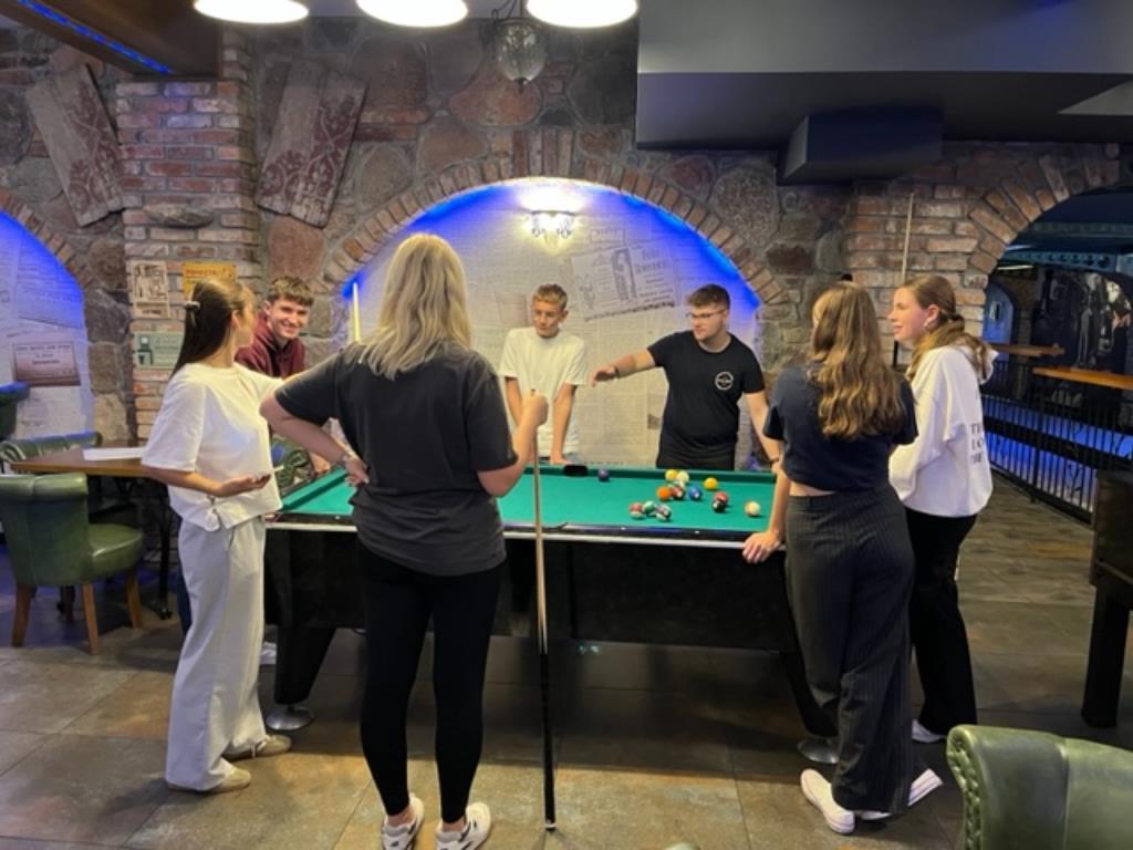 Uczniowie mieli okazję poznać Kartuzy, biorąc udział w grze miejskiej. Warto zaznaczyć, że był to czas pełen wrażeń, emocji i integracji przy przy kręglach.
